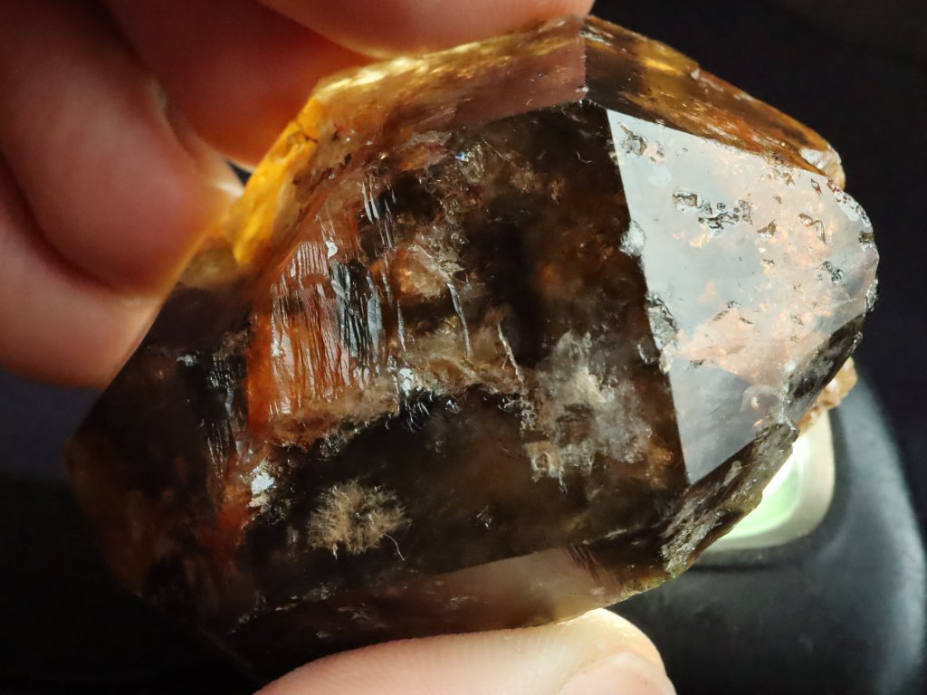 Sluníčkem či baterkou je pak vzorek takřka neprůsvitný, což je dobře zachyceno na posledním snímku.