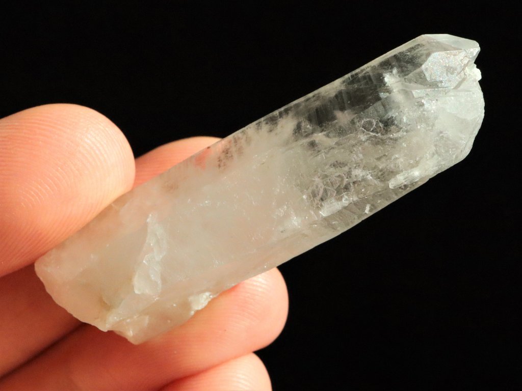 Podlouhlý krystal křišťálu decentně zakalený mléčným křemenem