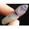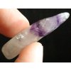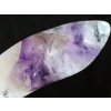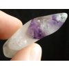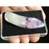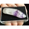 Jde o menší podlouhlý tromlovaný valounek ametystu v hezké kombinaci s mléčným křemenem a čirým ledovým křišťálem.