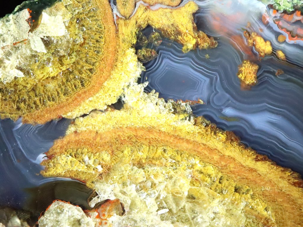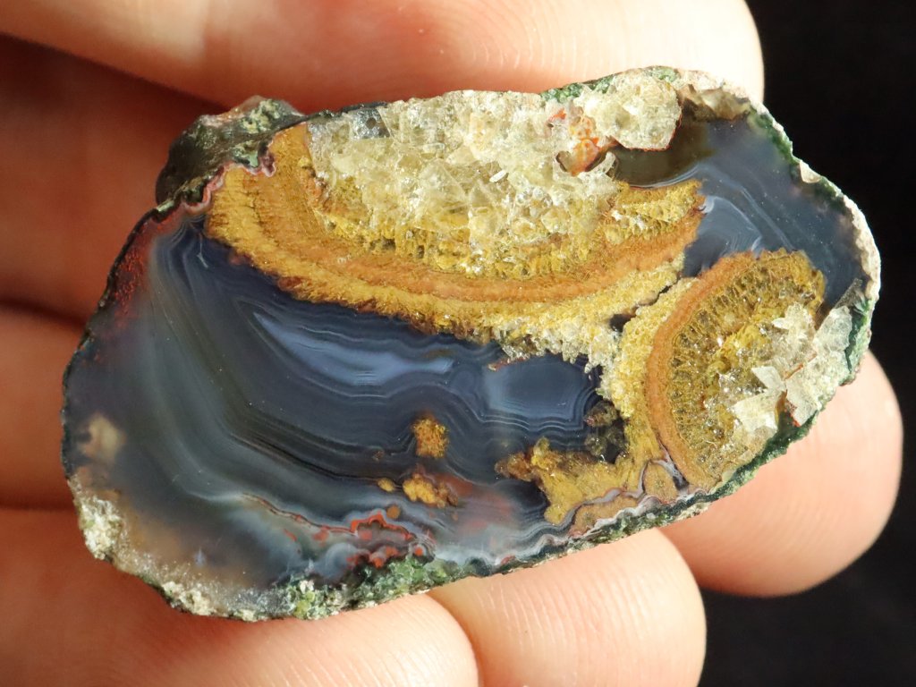 Uvnitř totiž kamínky skrývají působivou a pro acháty typickou kresbu, často i se zajímavou kombinací barev. Můžou se zde někdy vyskytovat i příměsy dalších minerálů nejčastěji bílého až čirého křišťálu, fialového ametystu, jaspisu či karneolu.