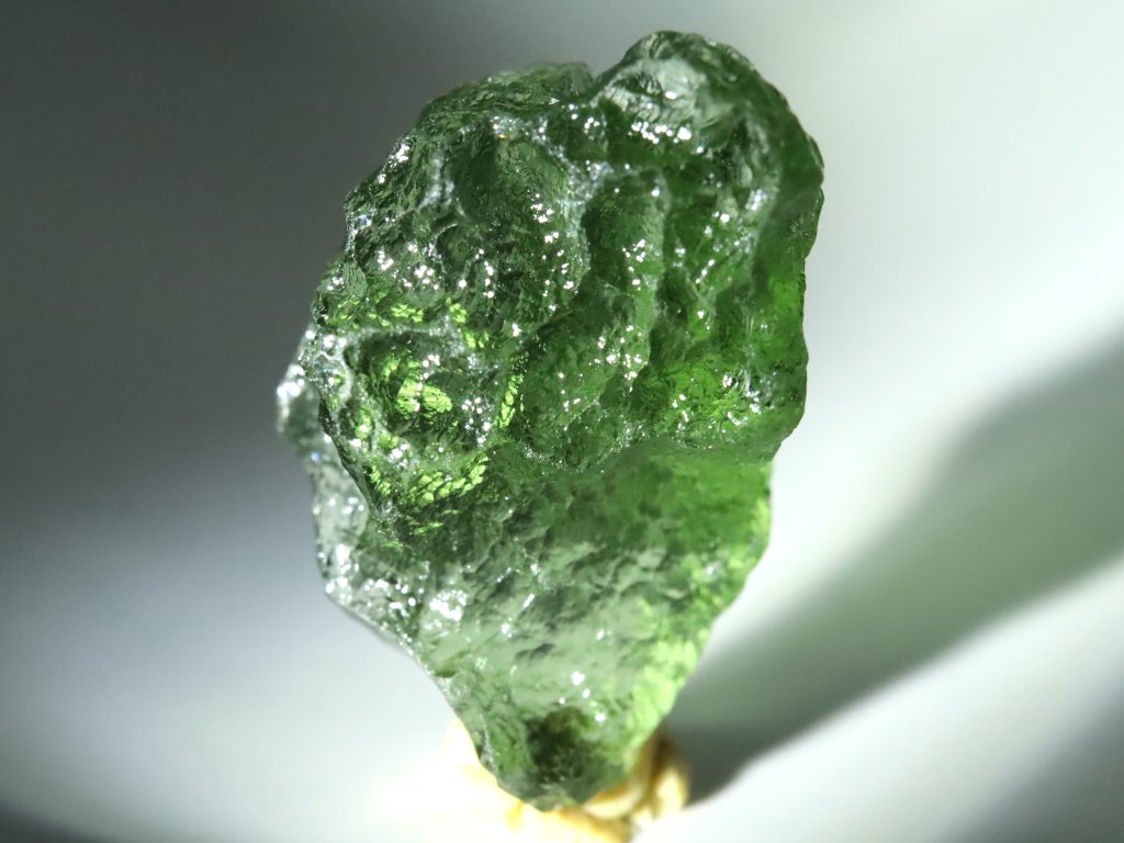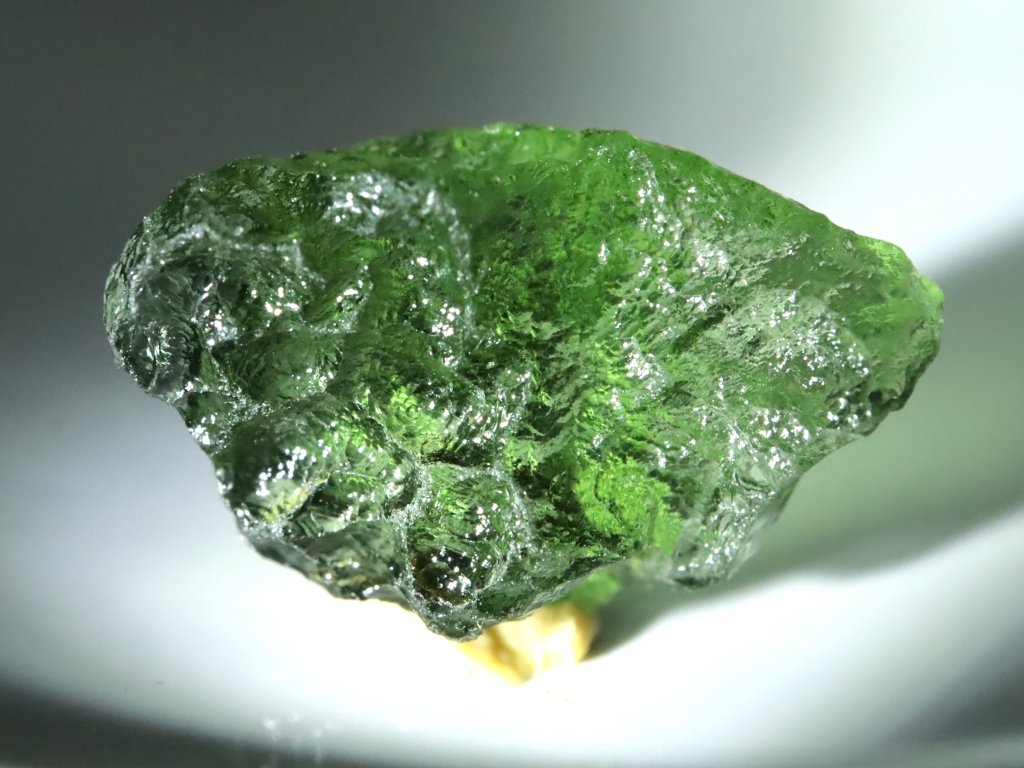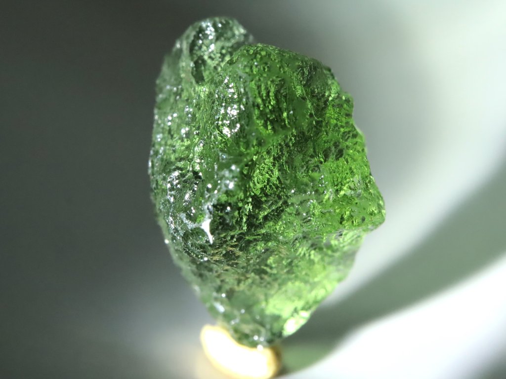Surový vltavín též označovaný jako moldavit, pocházející z oblasti jižních Čech.