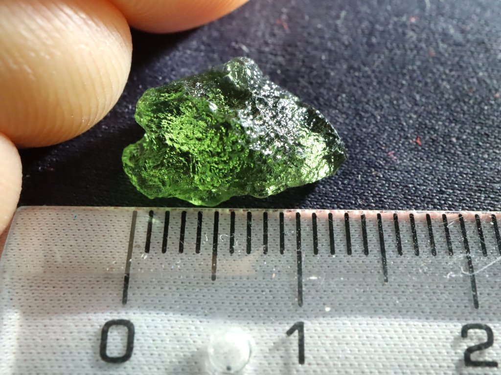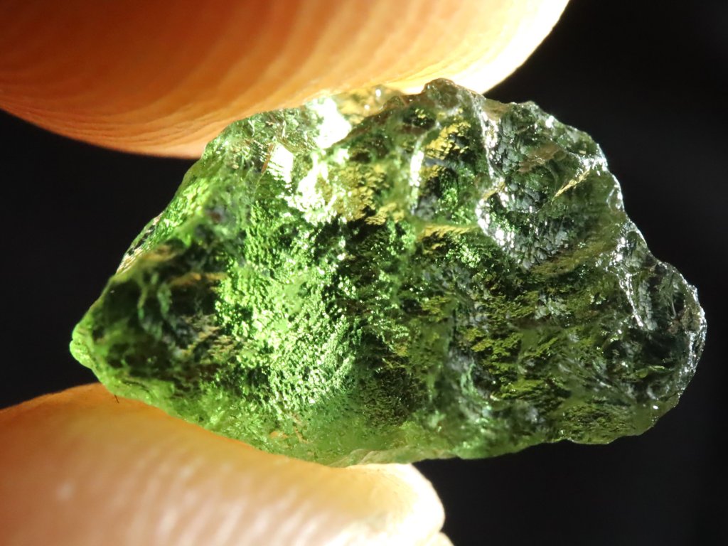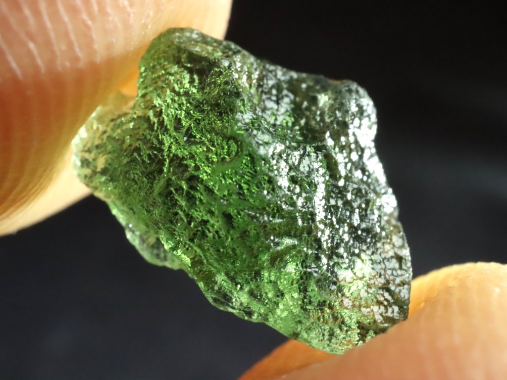 Podmanivě zbarvený vltavín s jemnou důlkovitou skulptací- 0,73 g