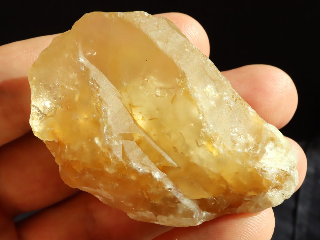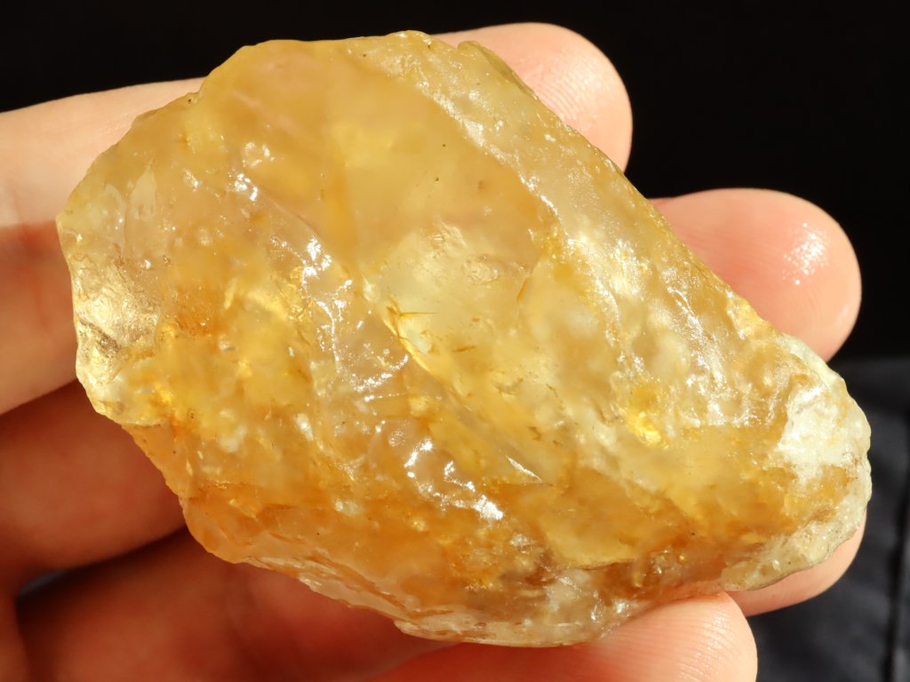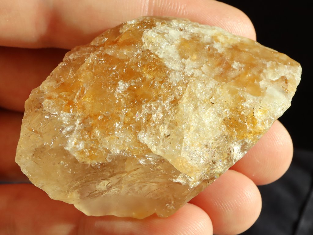Z pohledové strany je citrín matný a nepatrně ohlazený, zadní strana je pak částečně lesklá a můžete tu spatřit drobný duhový odlesk (barevnou duhu).