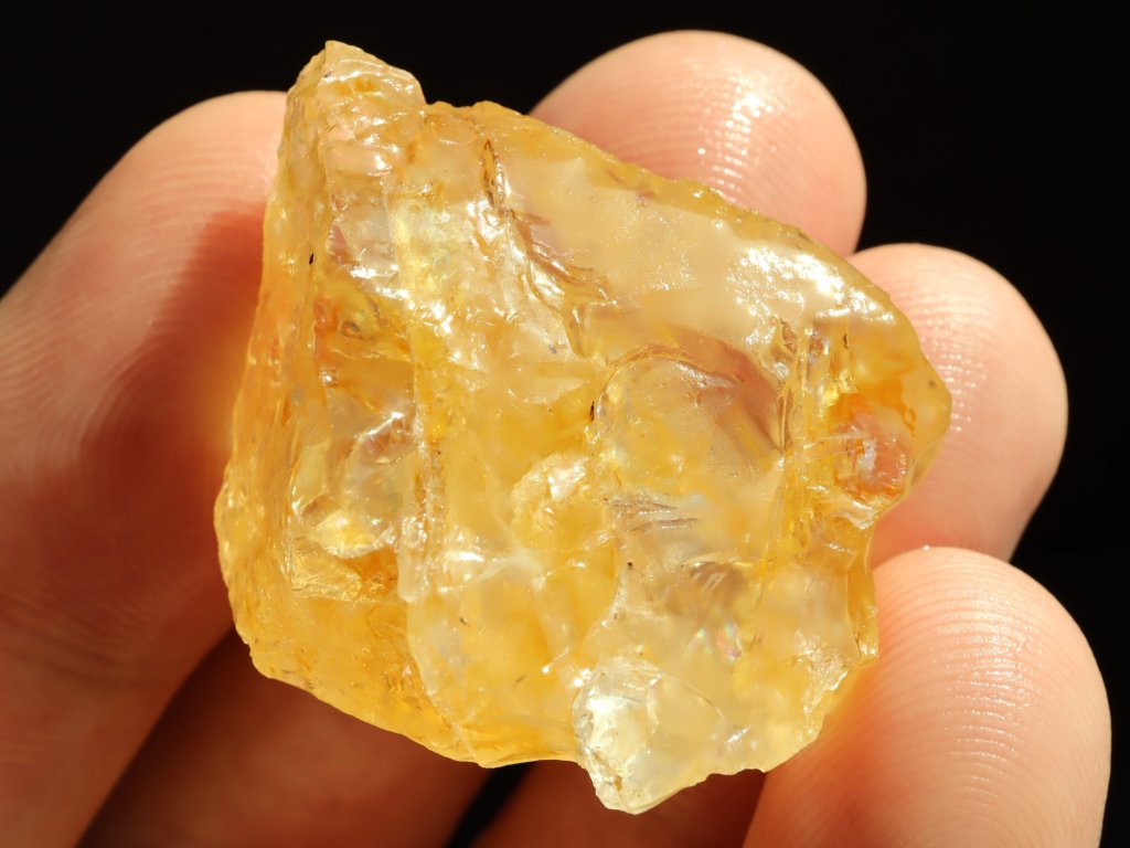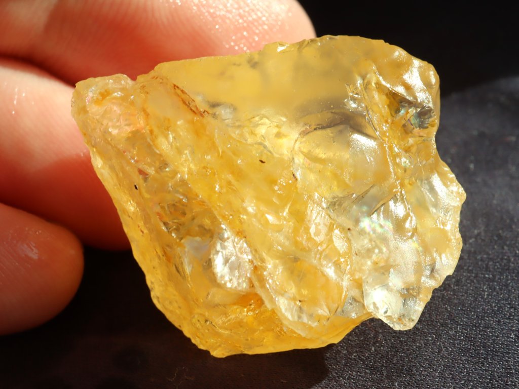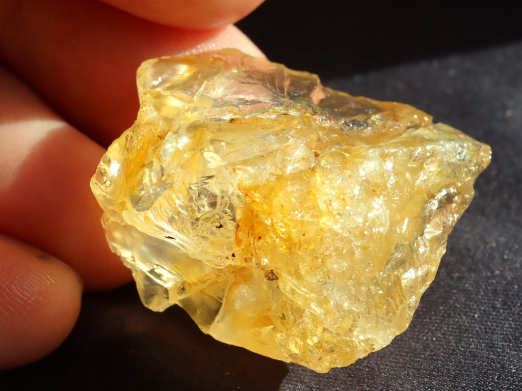 Když je navíc vzorek mokrý, vynikne a zazáří ještě o něco více - Mokrý citrín na sluníčku je zachycený na úvodních třech fotografiích.