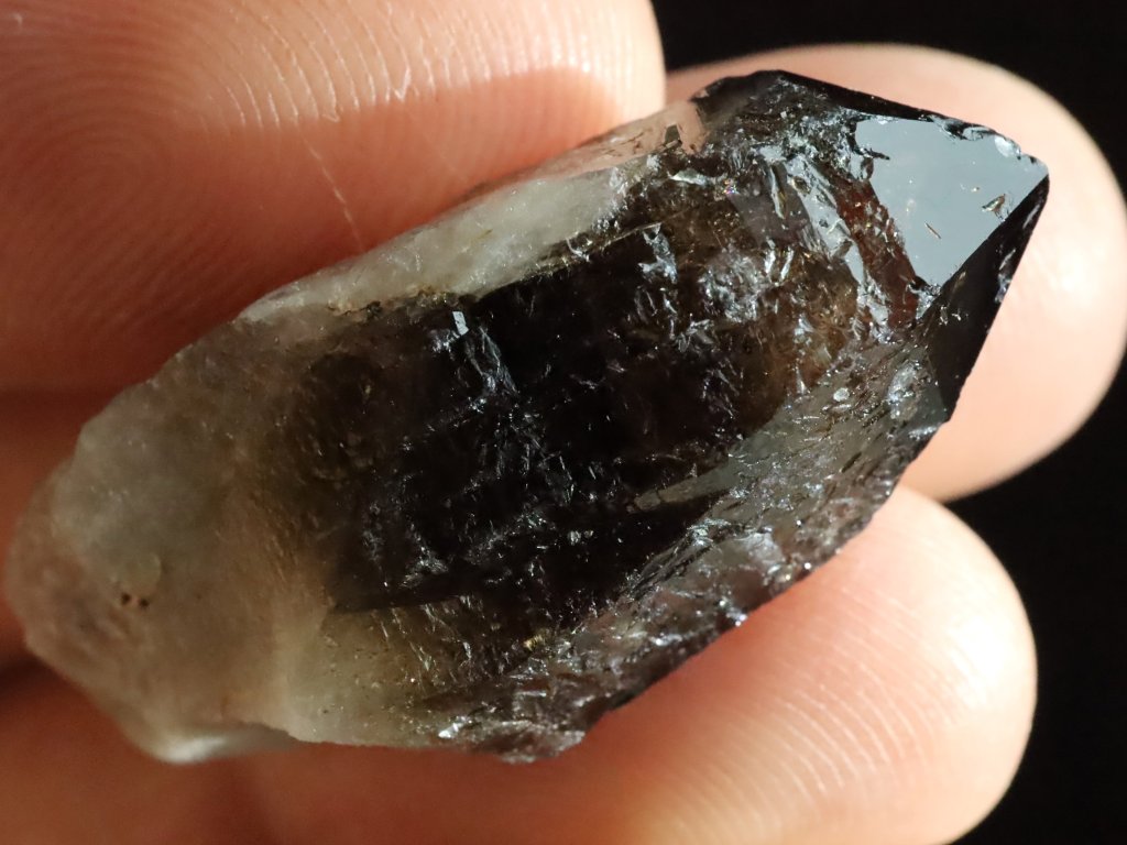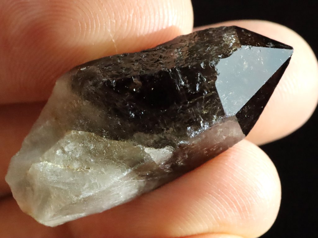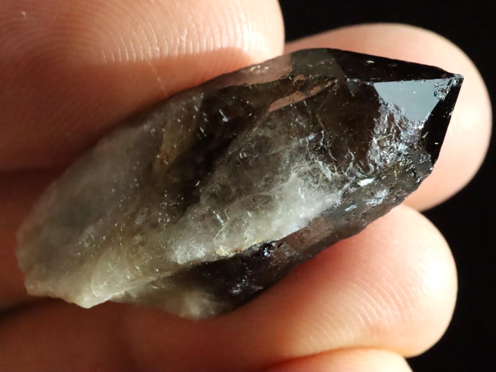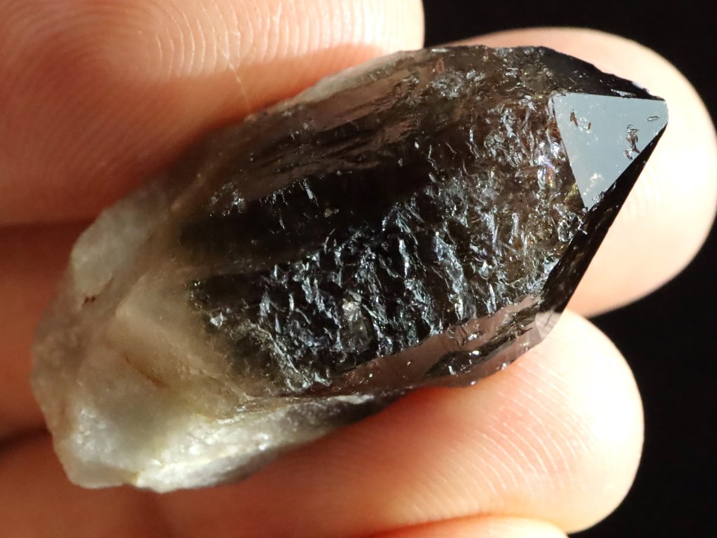 Jedná se o drobnější krystal morionu s délkou cca 3,5 centimetru, který má krásně zachovalé obvodové stěny i samotnou špičku.