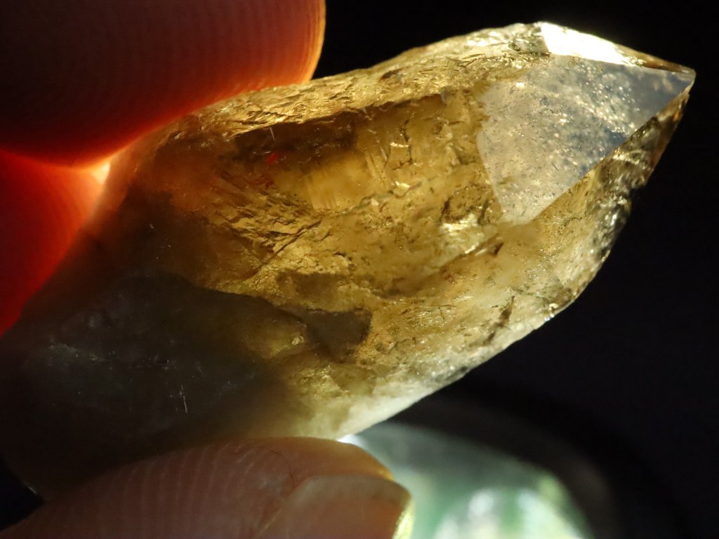 Při prosvícení kamínku lze také solidně nahlédnout do jeho skromného ale pěkného vnitřního světa plného mlhovinových závojů.