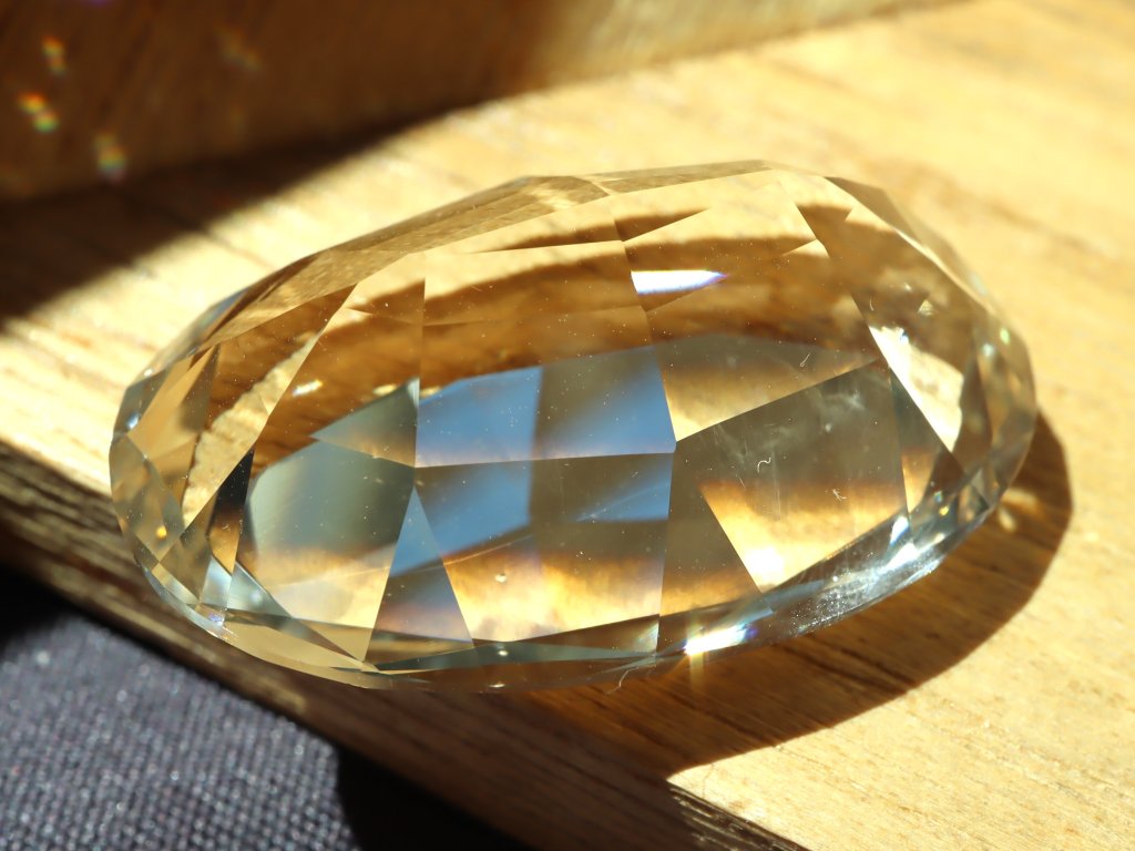 Výbrus má slušný počet fazet (plošek), díky tomu může kamínek perfektně zazářit a předvést tak svoji skrytou hru barev, třpytu a dalších jedinečných vlastností.