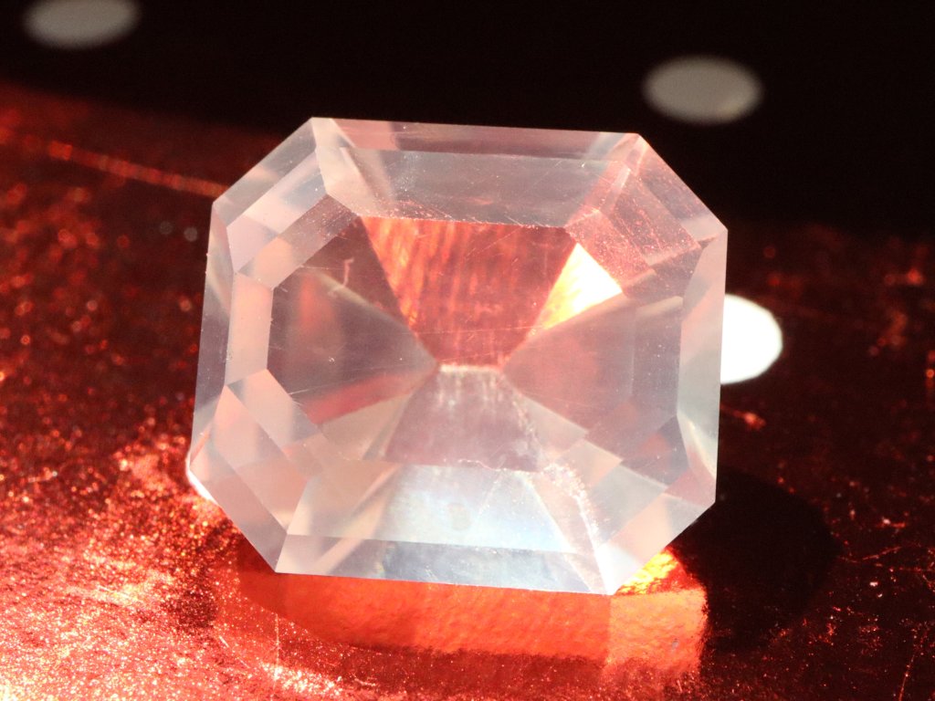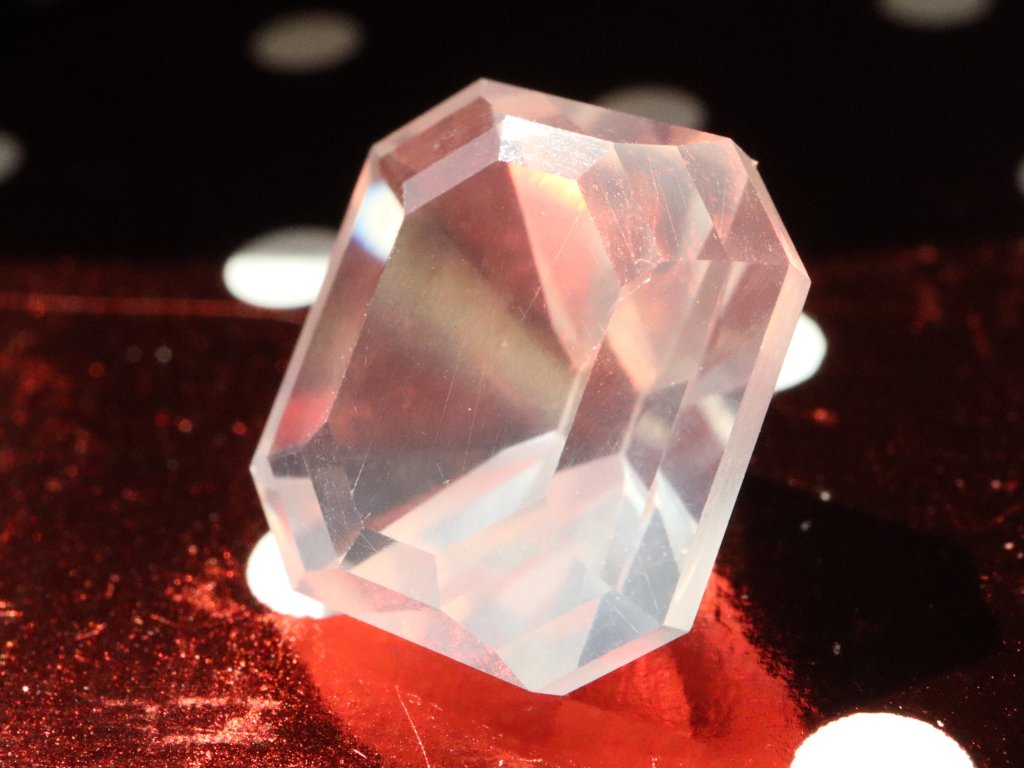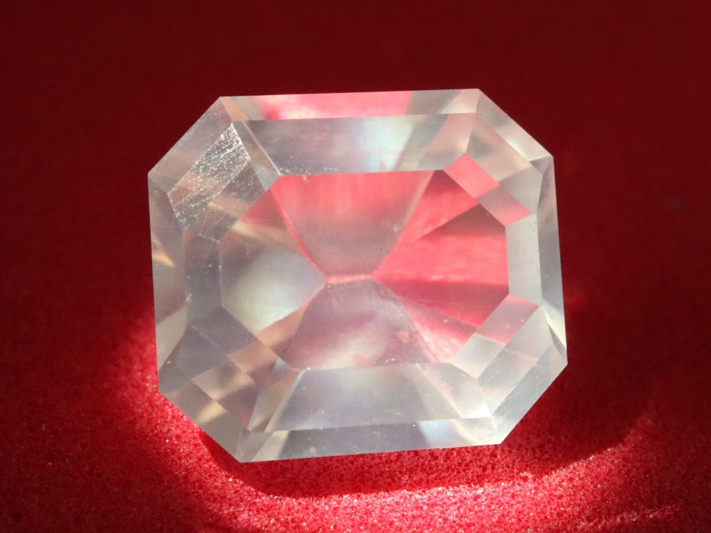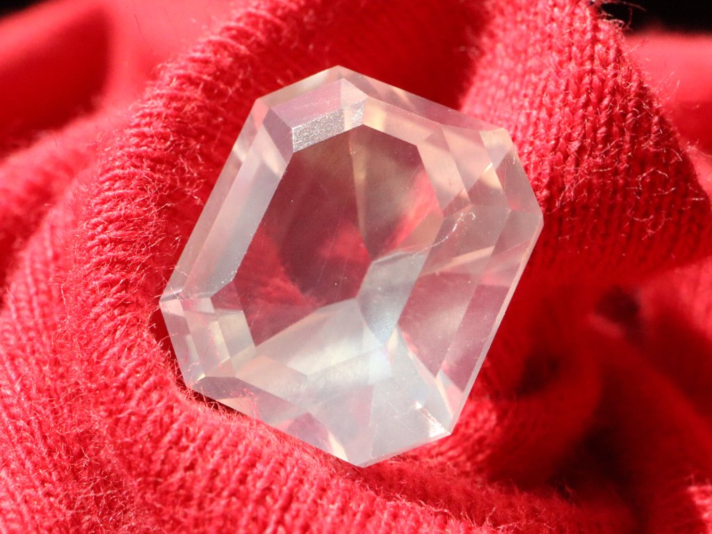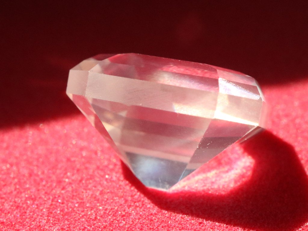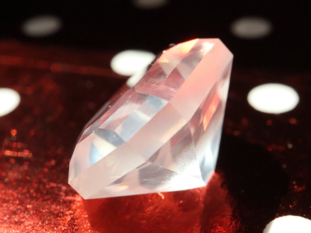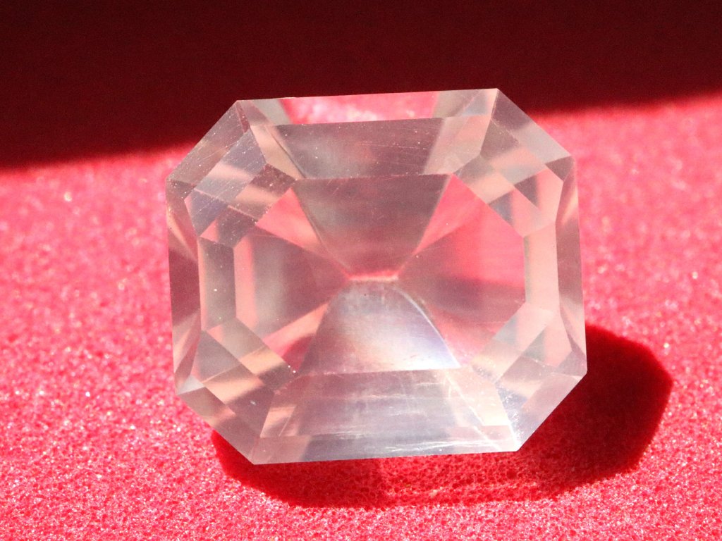 Po opracování a vybroušení původního zlomku surového růženínu do facetového brusu se kámen zhodnotil a stal se z něj opravdový drahokam, který je vhodný nejen do kvalitní sbírky, ale může vyniknout i v krásném a jedinečném větším šperku.