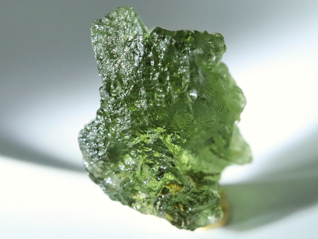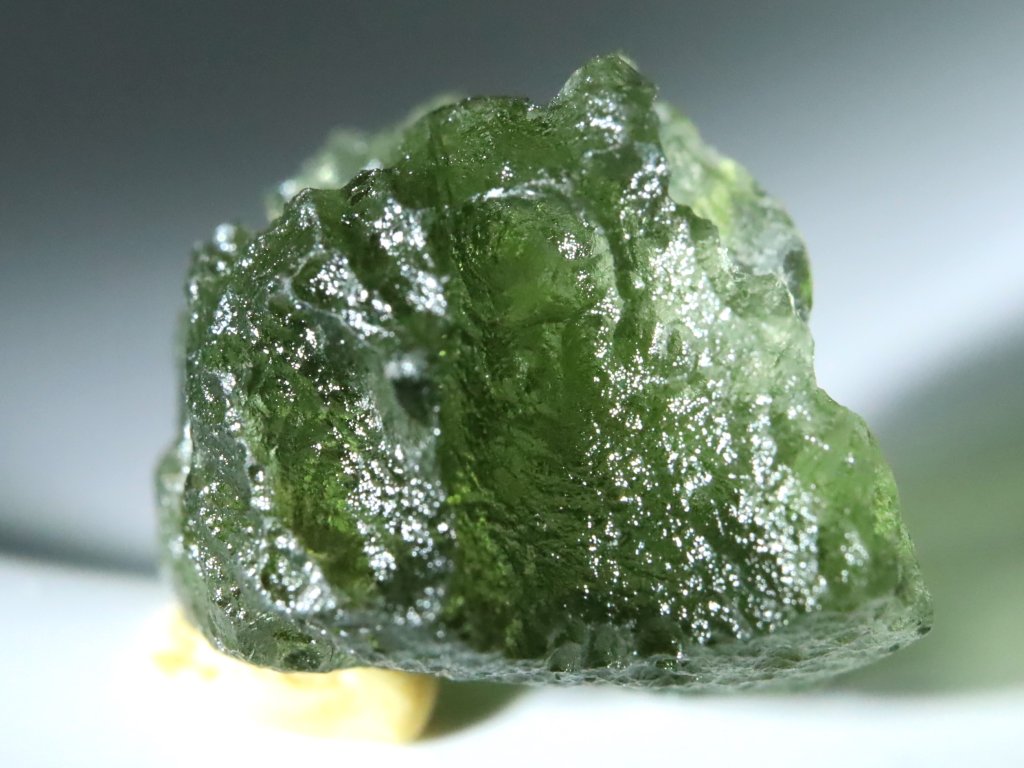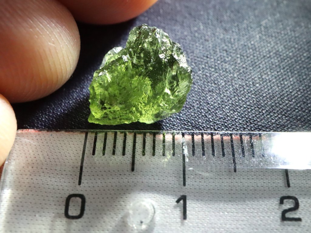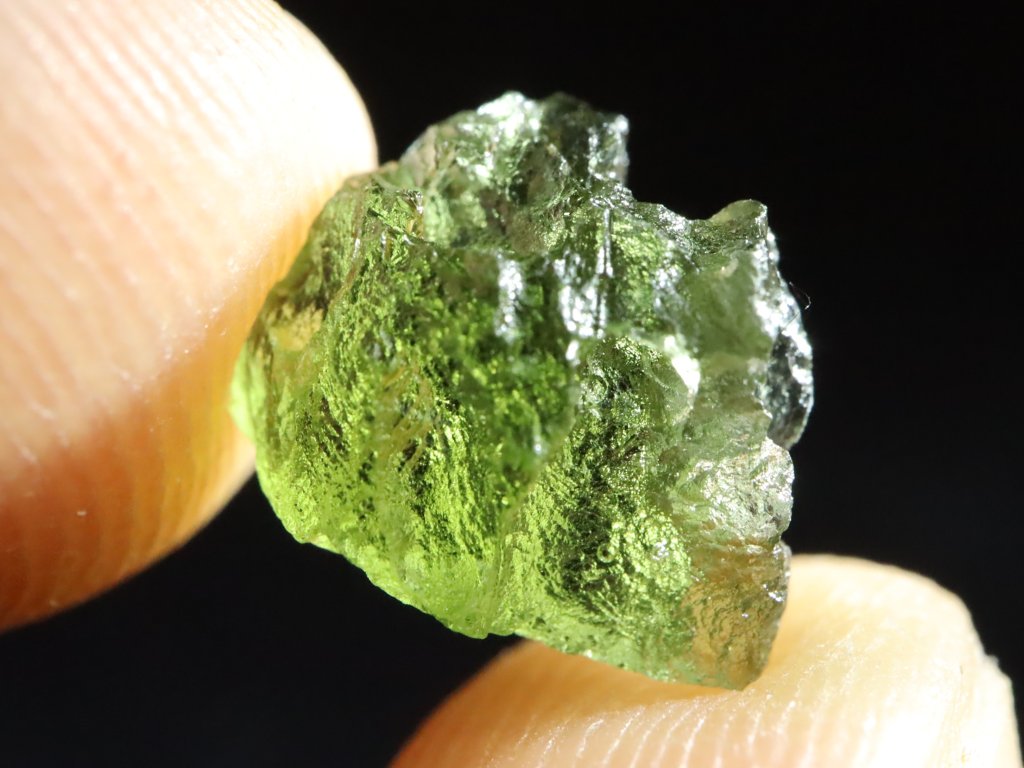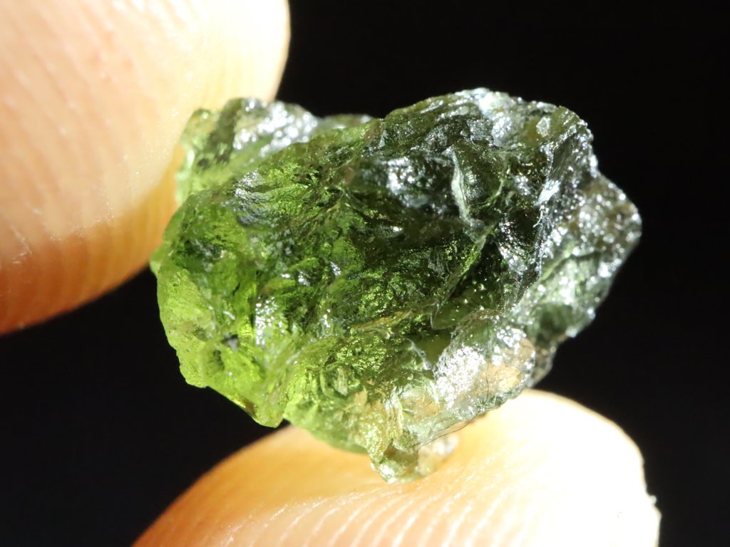 Přírodní vltavín s váhou 0,83 gramu pocházející z oblasti jižních Čech.