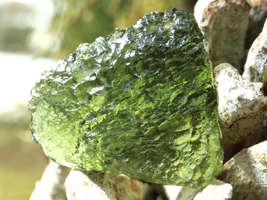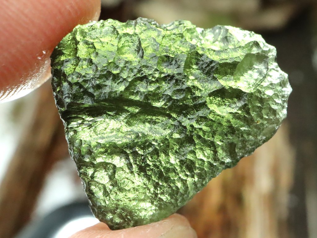Příjemně zbarvený vltavín s krásnou důlkovitou skulptací - 4,01 g