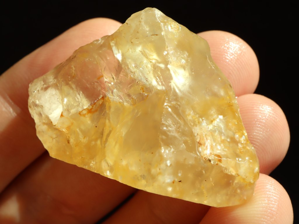 Tento konkrétní citrín vás na sluníčku upoutá svým podmanivým středně žlutým odstínem. Ještě více pak kousek vynikne a zazáří pokud je navíc mokrý, což jsme pro vás zachytili na posledních dvou snímcích.