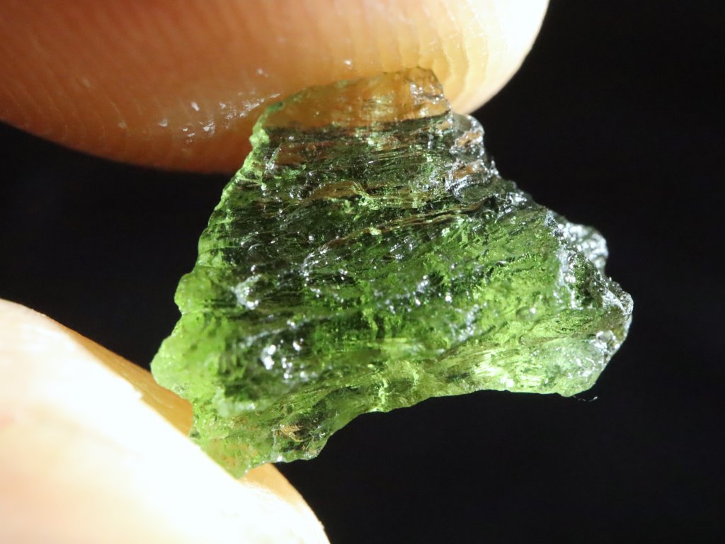 Surový vltavín s hmotností 0,54 gramu pocházející z oblasti jižních Čech.