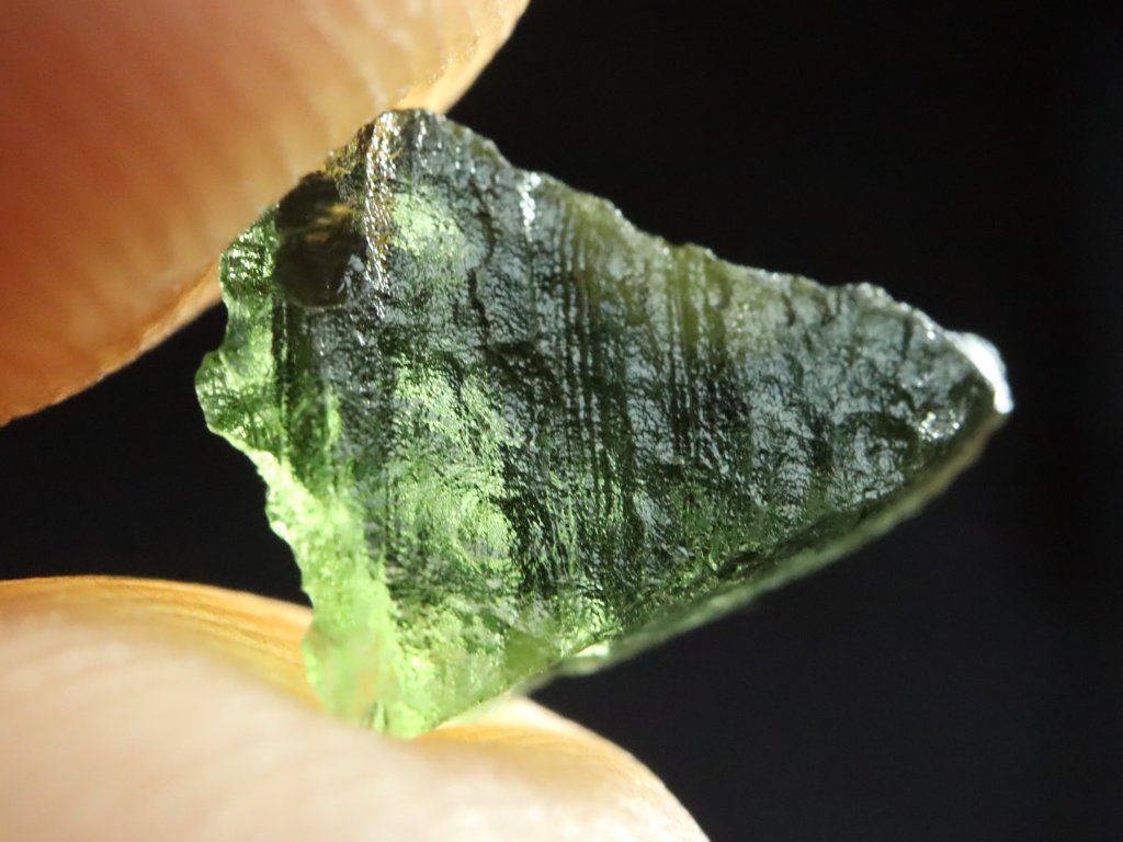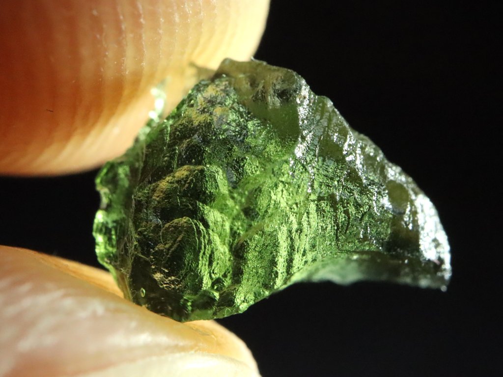 Surový vltavín s hmotností 0,55 gramu pocházející z oblasti jižních Čech.