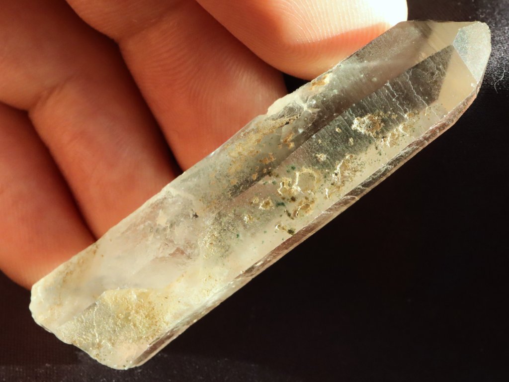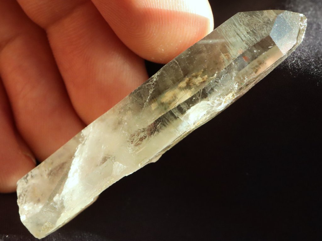 Tento krystal křišťálu se pyšní délkou 6 centimetrů a také krásně zachovalým stavem. Pouze špička je z jedné strany nepatrně ťuklá, ale to vzorku rozhodně nijak neubírá na celkové atraktivitě.