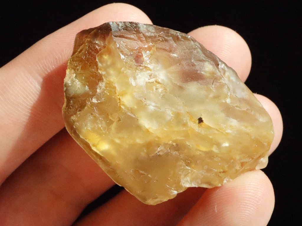 Citrín je celý výborně průsvitný (sluníčkem nebo baterkou), kvůli převážně matnému povrchu však nelze nahlédnout zcela dovnitř kamene. I přes to je však celkem dobře patrné že půlkrystal ukrývá slušnou čistotu.