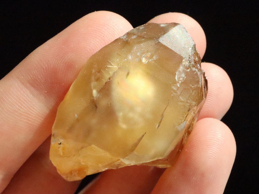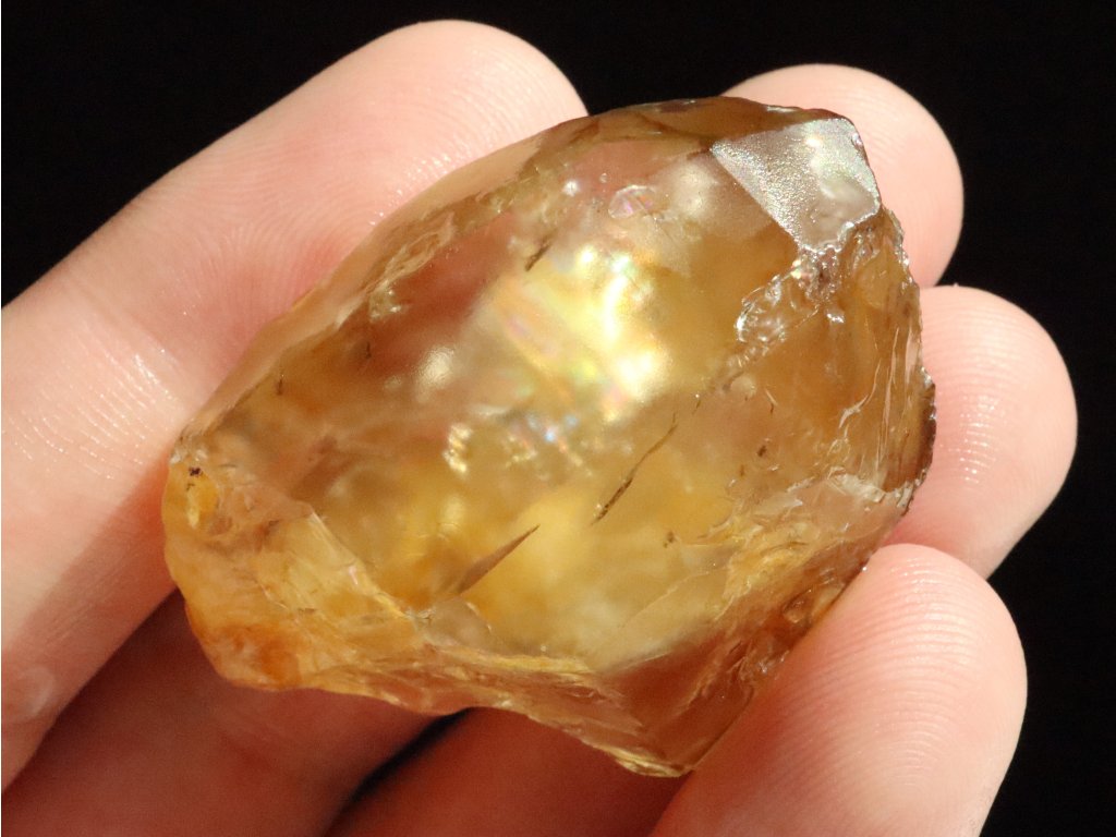 Když je citrín mokrý, můžete těsně pod povrchem spatřit i krásnou barevnou duhu.