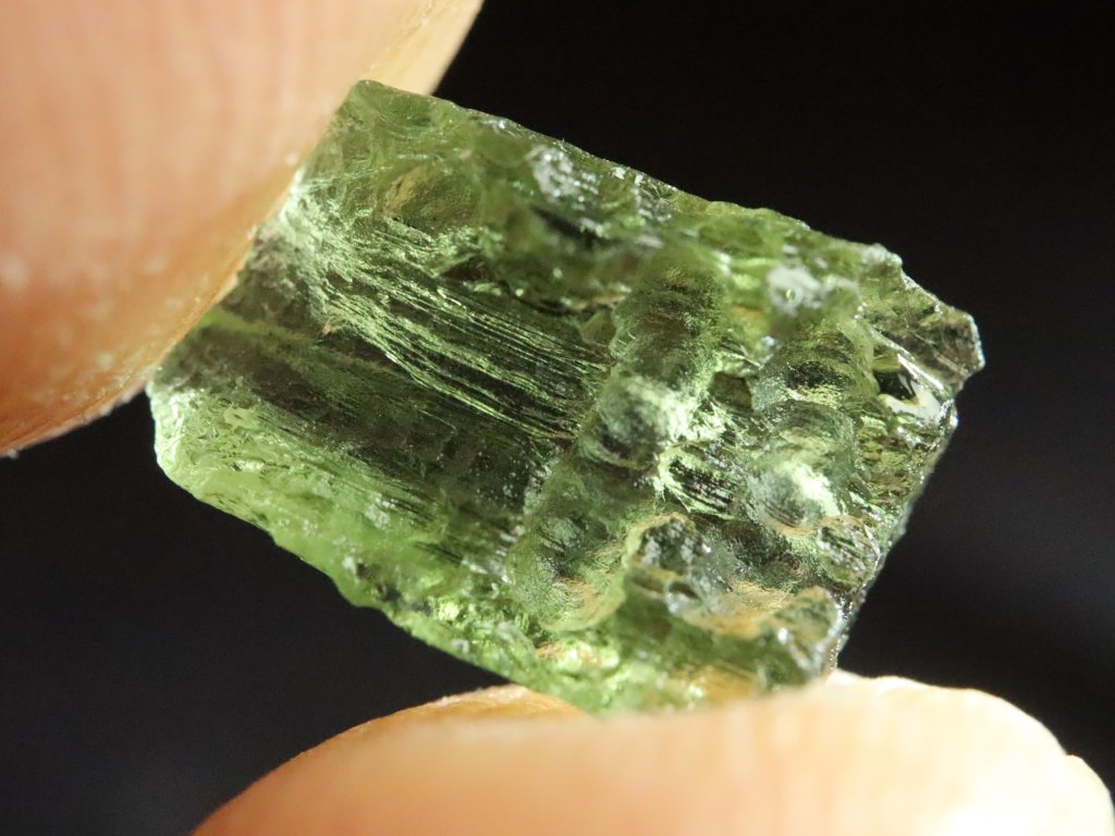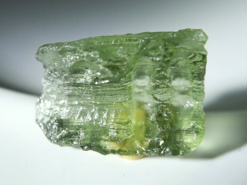 Vltavín má originální mírně prohnutý tvar ale i hezkou skulptaci (členitou strukturu povrchu), která má jemně důlkovitý až rýhovaný charakter.