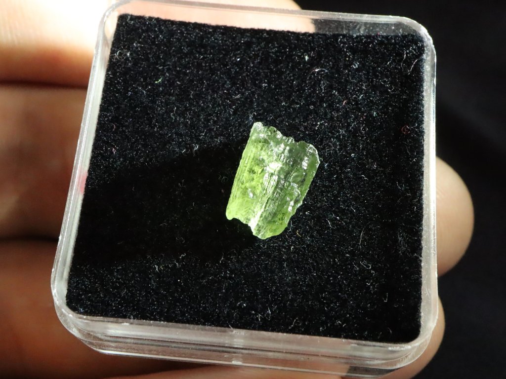 Vltavín obdržíte v kvalitní (hodnotné) uzaviratelné průhledné plastové krabičce s polstrovaným vnitřkem - viz. foto. Kamínek se vám tak nejen nikam nezatoulá, ale zároveň se jím budete moci přes průhledné plastové víčko krabičky i skvěle kochat.