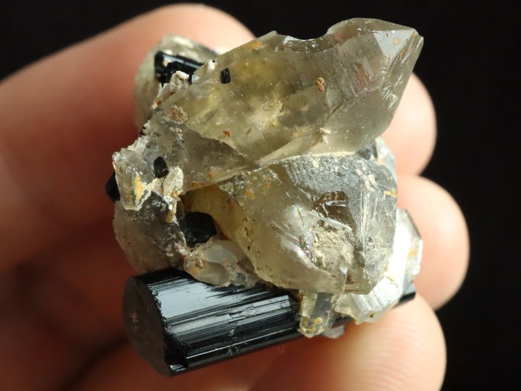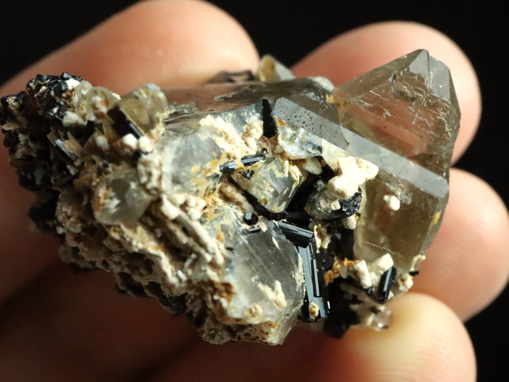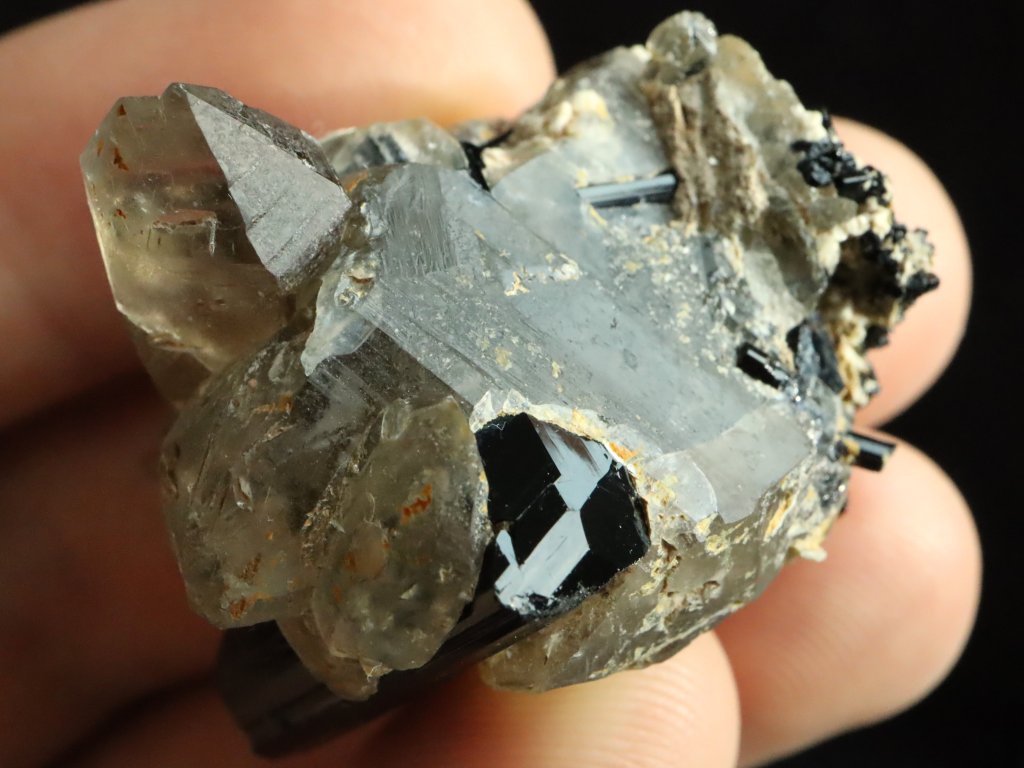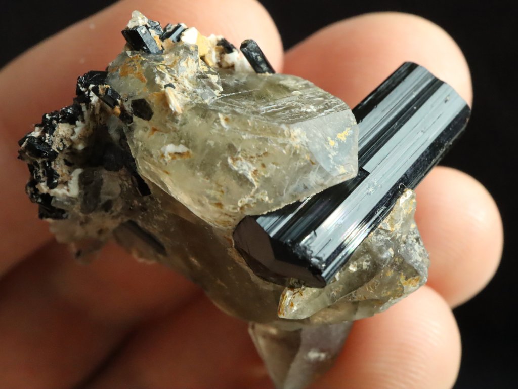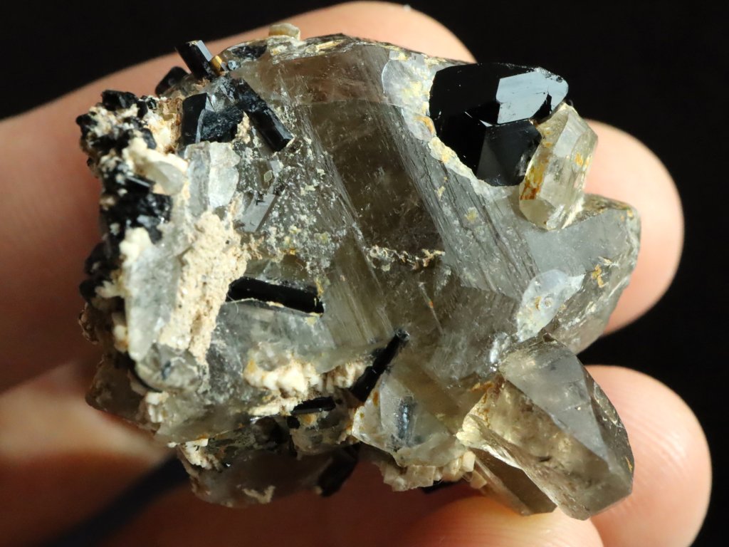 Sběratelská vzácnost - Ukončený skoryl, krystalky záhněd, jehličky skorylů