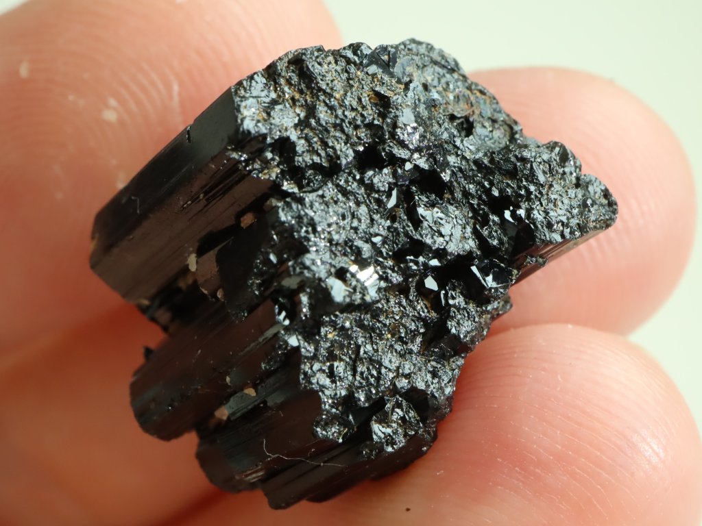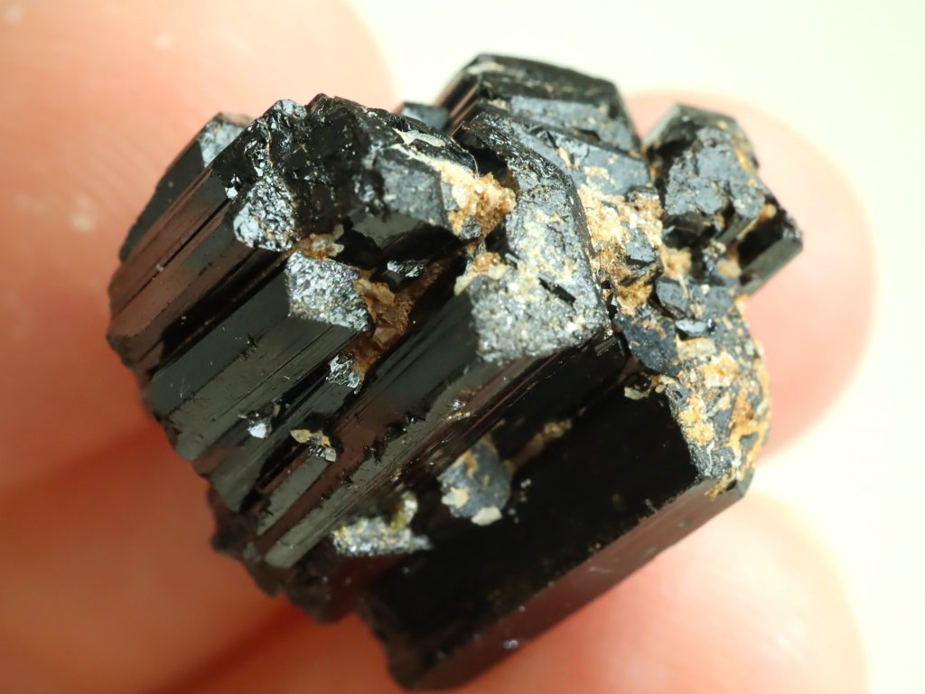 Vzácná ukázka přírodního černého turmalínu pocházejícího z naleziště Pikárec (Vysočina).