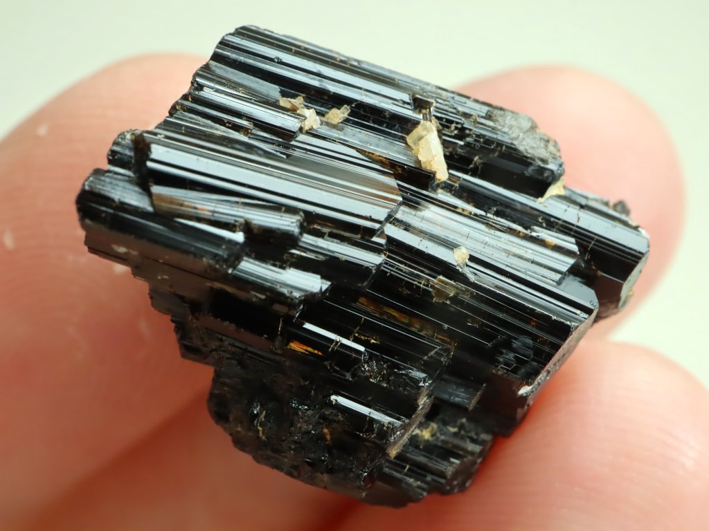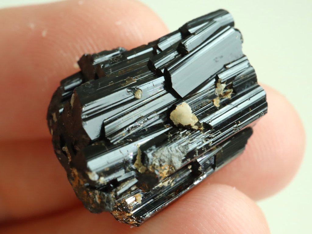 Stupňovitě rostlý i ukončený špalík černého turmalínu skorylu