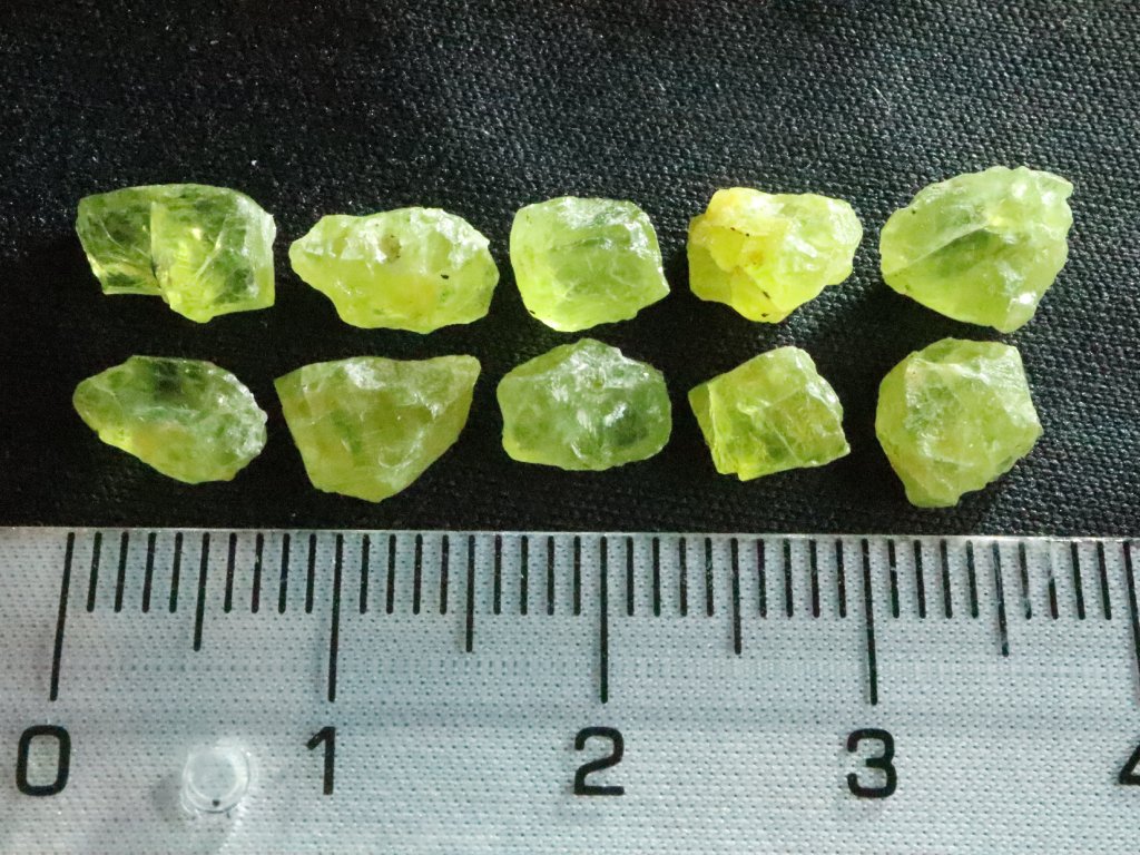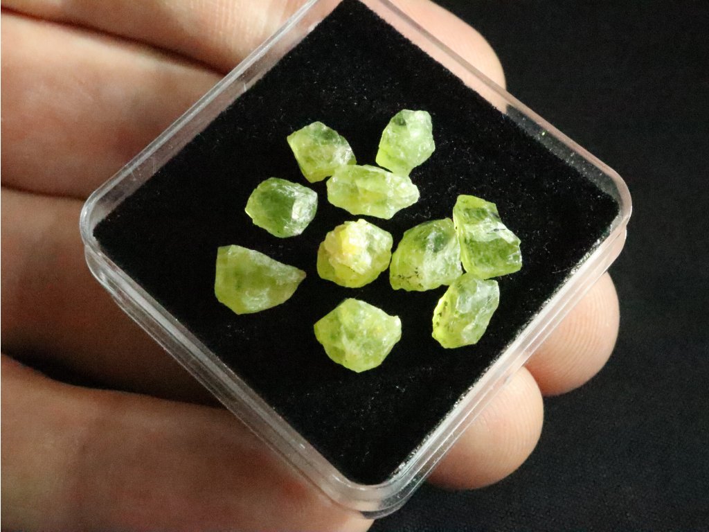Surová olivínová zrna s moc hezkou zelenou barvou - sestava 10 ks