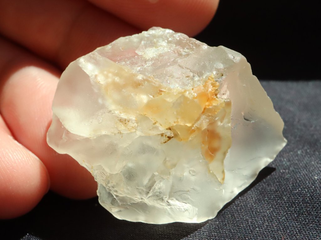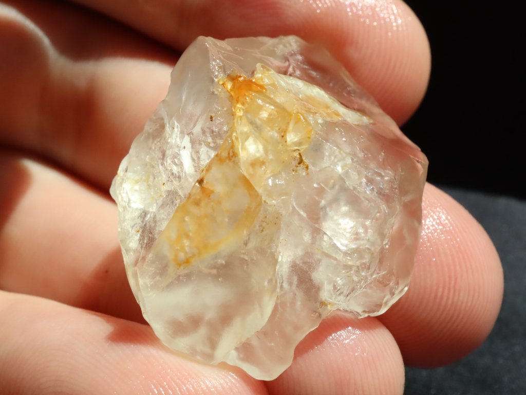 Nejvíce krása křišťálu vynikne pokud je mokrý a na sluníčku, to jsme pro vás zachytili na úvodních třech fotografiích. Na dalších dvou snímcích je pak kamínek již suchý.