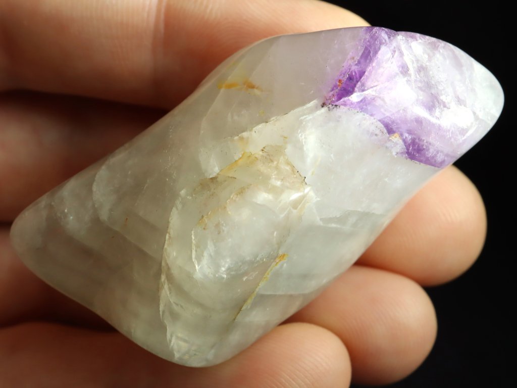 Jde o tromlovaný valounek ametystu ve spojení s mléčným křemenem.