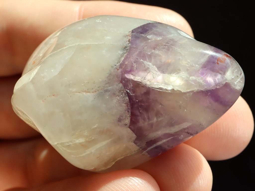 Tromlovaný valoun ametystu v kombinaci s křemenem