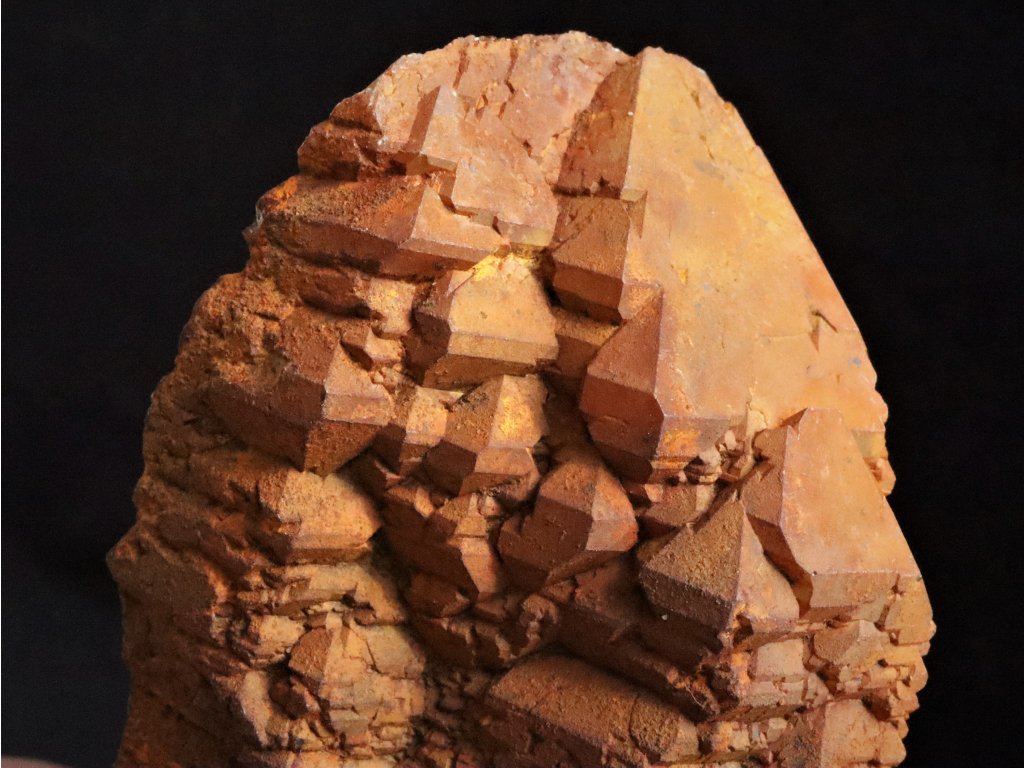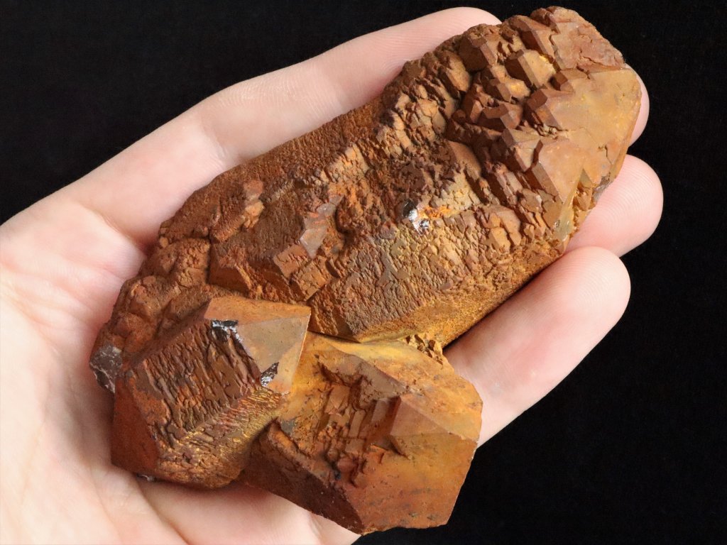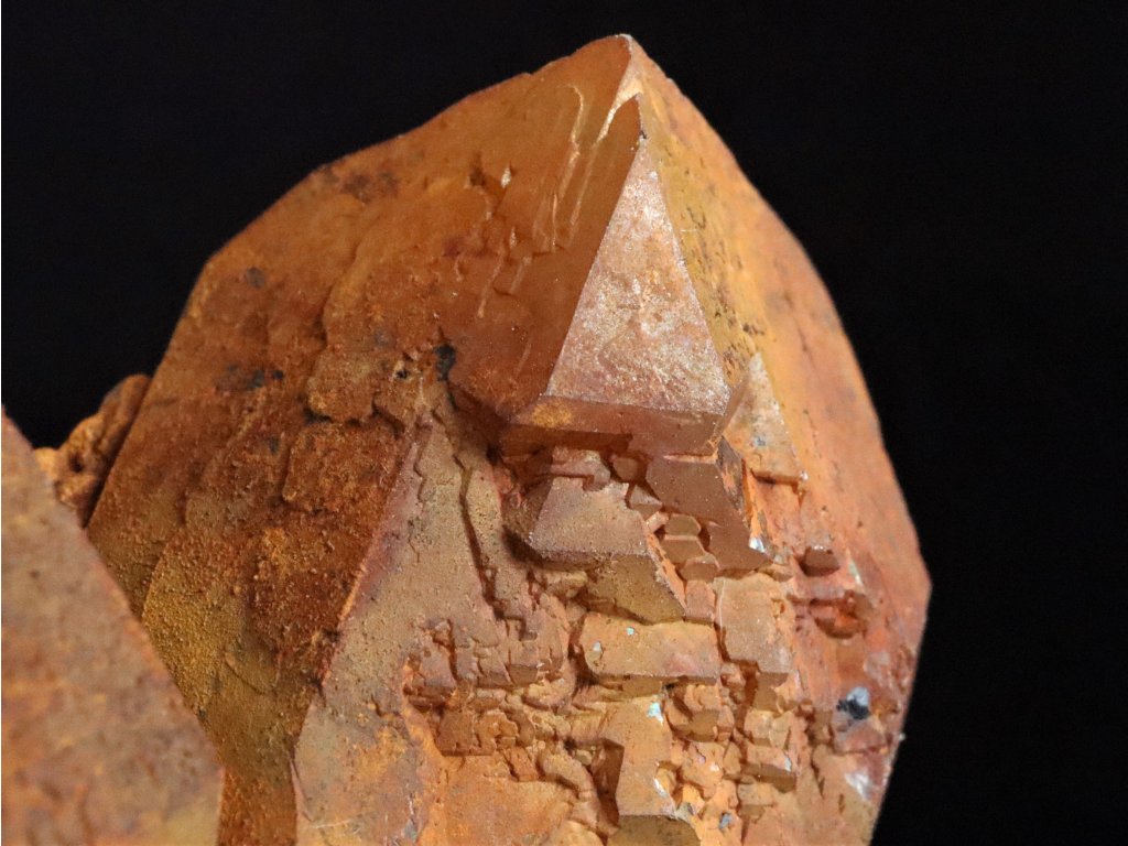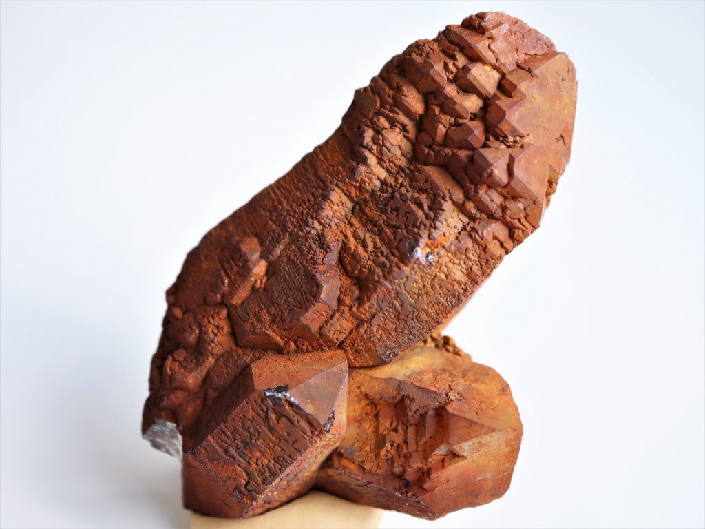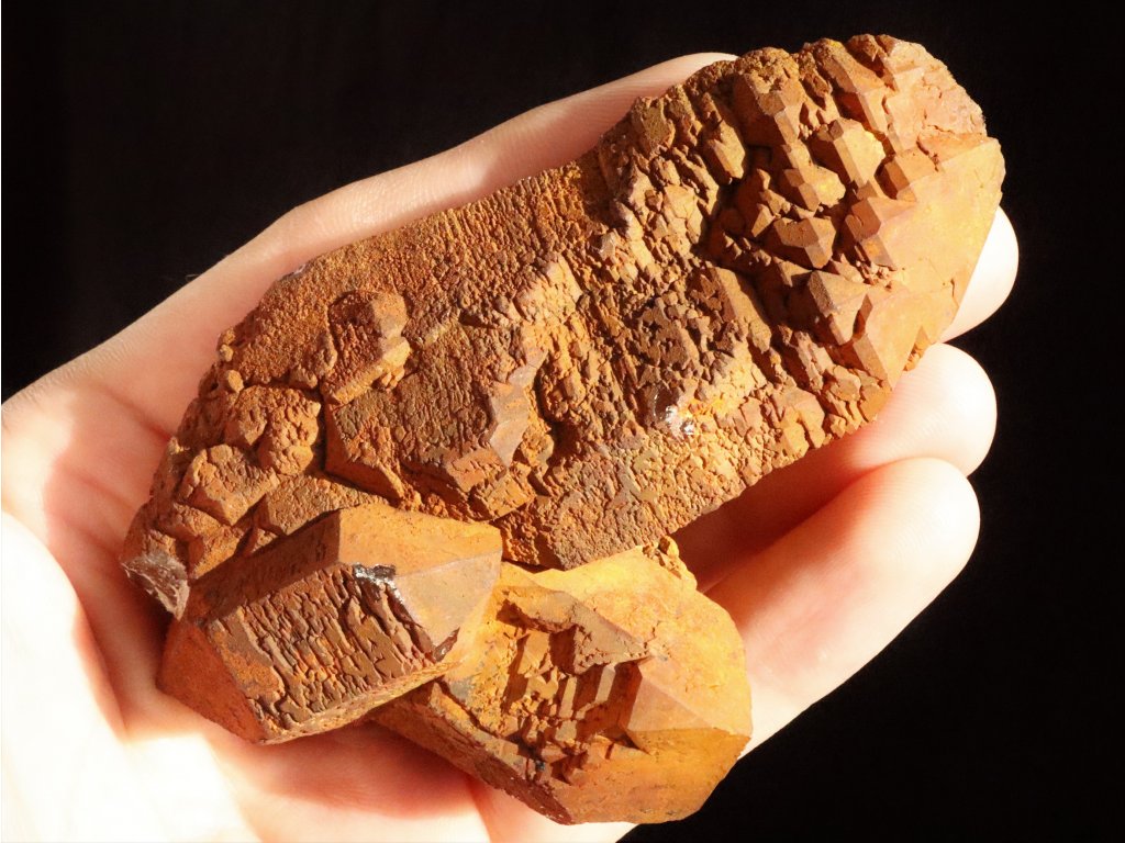 V našem případě je však prakticky celý povrch křemene pokrytý povlakem, vrstvičkou či chcete-li krustou přírodního hnědo-oranžového limonitu neboli oxidu železa. Ten propůjčuje kameni naprosto jedinečný vzhled a vzorek působí dojmem jako by byl "ožehnutý ohněm". Navíc tento limonit dodává kameni vyjímečnou trojrozměrnost (prostorovost) takže krystaly i jejich elestiální růst zde fantasticky vyniknou.