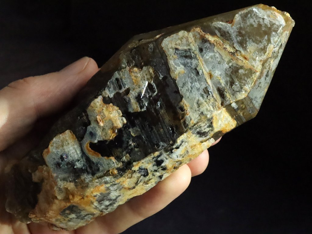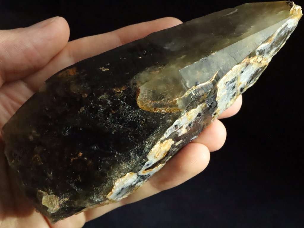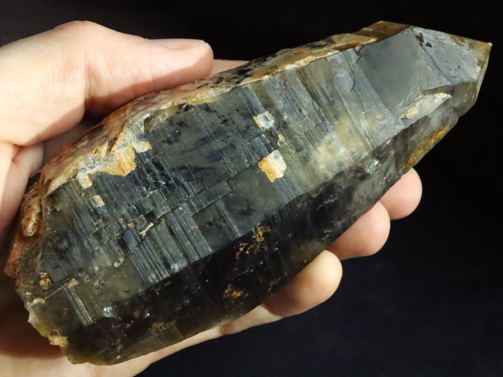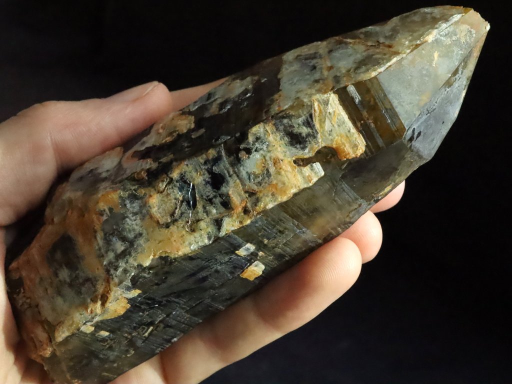Velký krystal morionu s lehkou křemennou krustou - Délka 14 cm