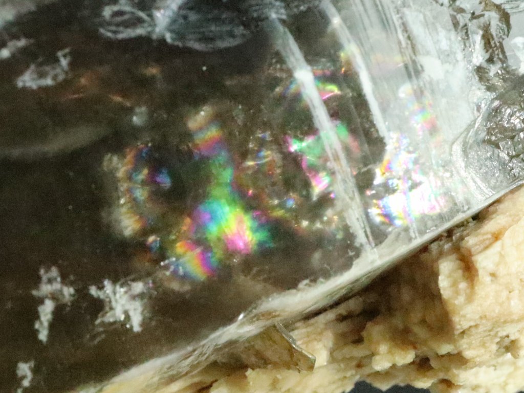 Poměrně snadno pak objevíte i chloubu této záhnědy a sice půvabnou barevnou duhu (duhový odlesk) která se pyšní velikostí cca 10 x 10 milimetrů.