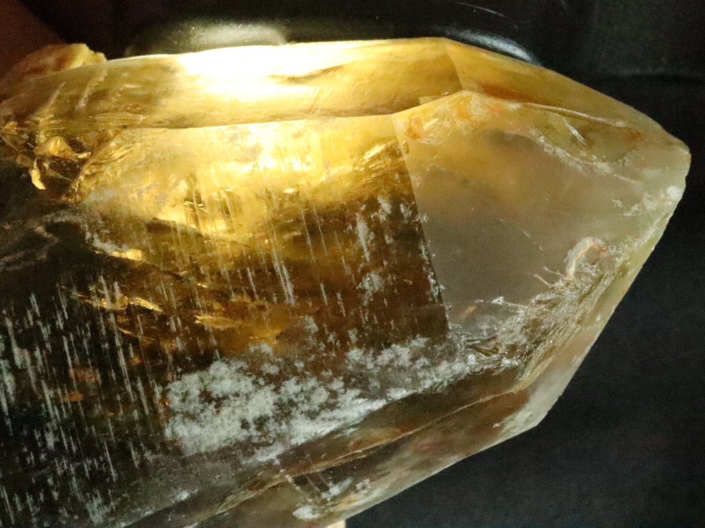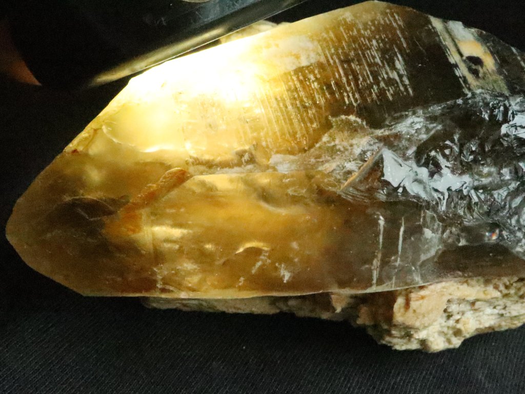 Krystal lze však i solidně prosvítit (sluníčkem či baterkou), můžete tedy i částečně nahlédnout do jeho vnitřního světa plného mlhovin, peříček a dalších inkluzí.
