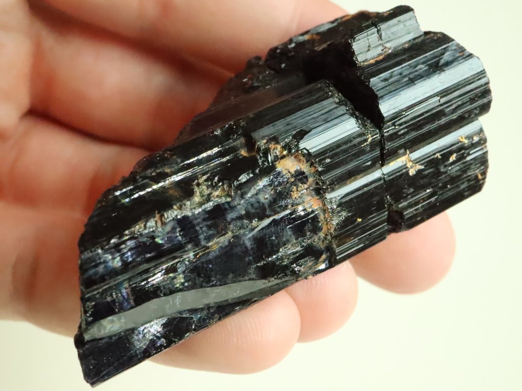 Na celkové atraktivitě turmalínu přidává i mimořádně vysoký lesk a výrazné rýhování po obvodu špalku.