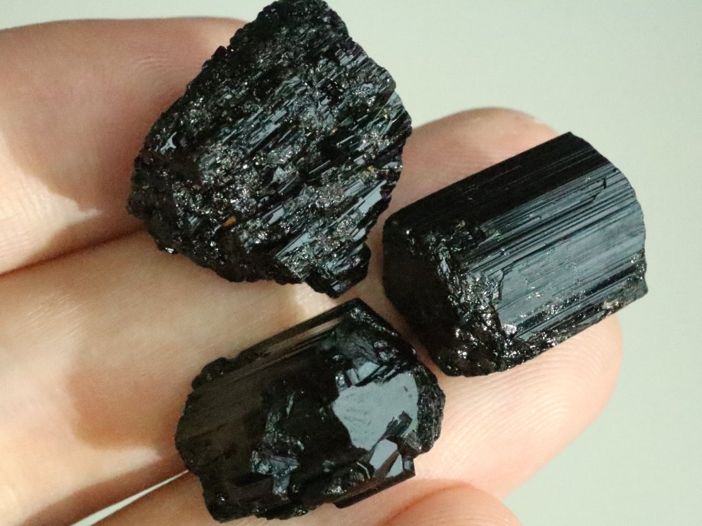 Hezká ukázka přírodních černých turmalínů ve výhodné sadě tří kousků.