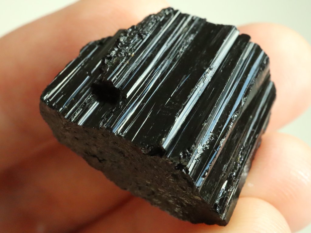 Černé turmalíny se v naší přírodě nacházejí v různých kvalitách. Nejčastěji je lidé hledají tzv. povrchovým neboli polním sběrem, tyto kousky jsou však často zvětralé, drobí se a často zcela rozpadají a to vlivem dlouhodobého působění vlivu počasí. Vzorky z polního sběru jsou také často potlučené / značně poškozené od zemědělské techniky. Zkušení šutráci a sběratelé pak hledají černé turmalíny v tzv. podzemních dutinách, kde jě kvalita kamenů v naprosté většině několikanásobně vyšší a to je právě případ i tohoto konkrétního kousku.