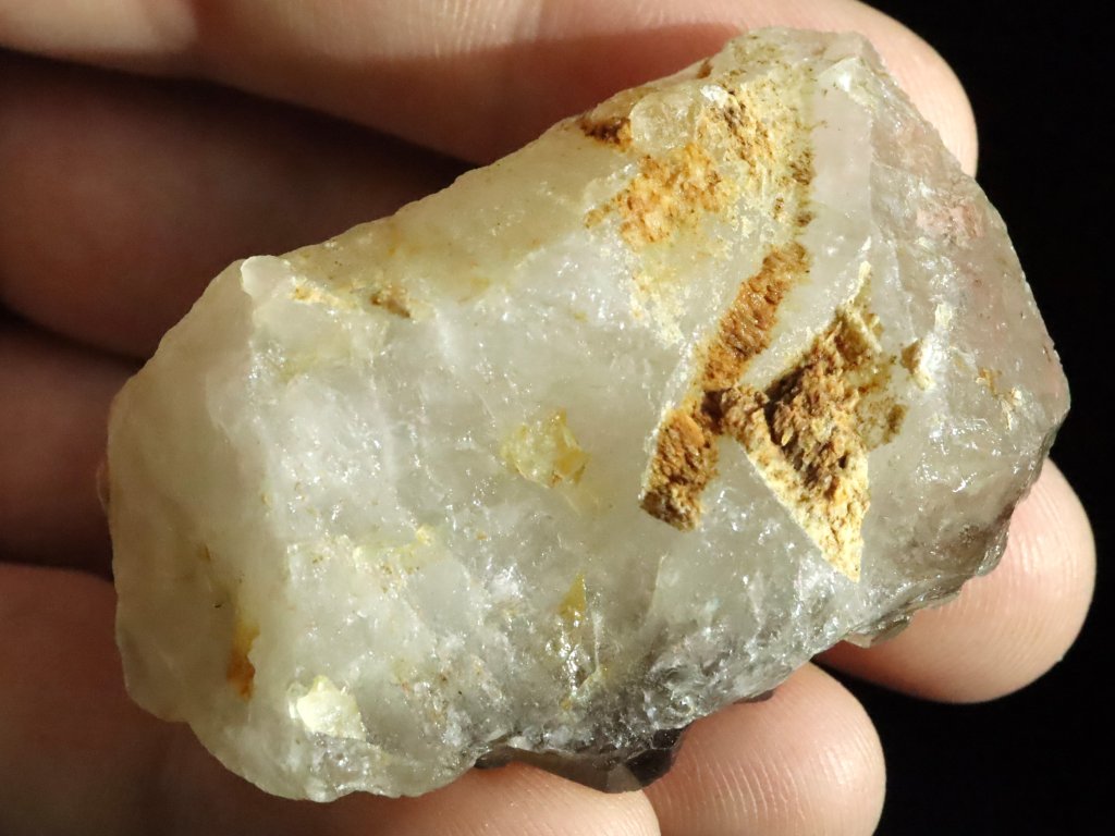 Základnu neboli podložku tohoto vzorku tvoří pěkný mléčný křemen lehce doprovázený okrově zbarveným ortoklasem.