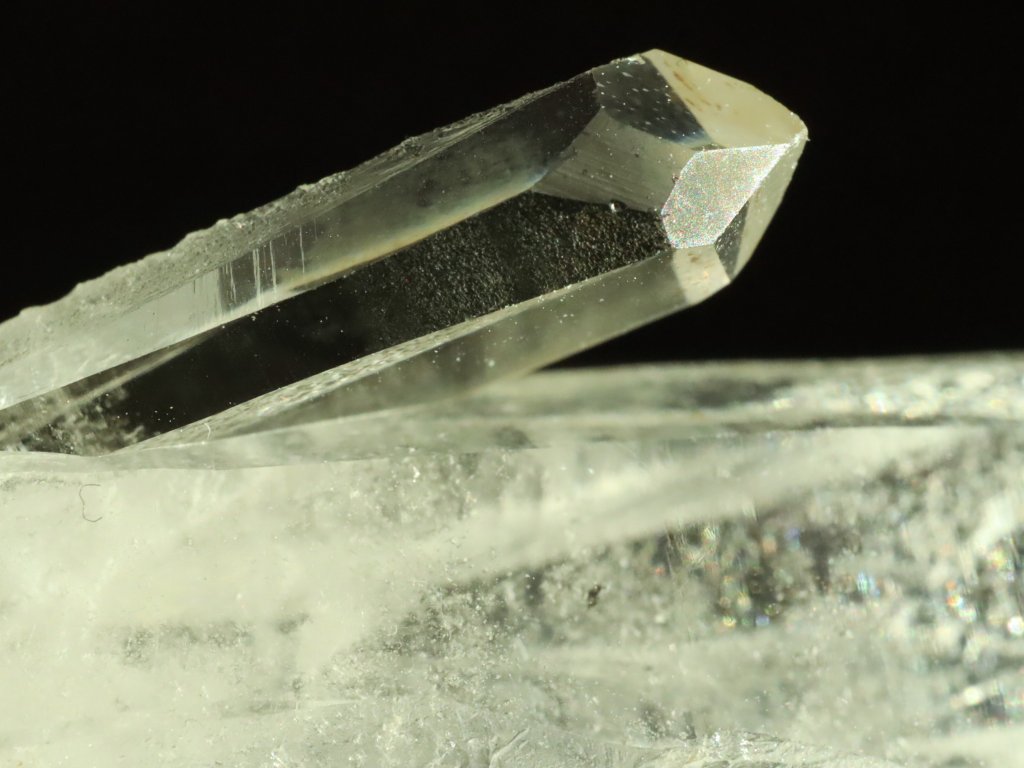 Malý krystalek navíc není úplně tak obyčejný, protože má velmi unikátní špičku. Najdete tu totiž jednu plošku (fazetu) která je tu tzv. navíc. Díky této malinkaté specifické plošně se tento krystalek může zařadit mezi vzácné Mistrovské krystaly a to konkrétně Spojovatele času - Více o tomto Mistrovském krystalu se dočtete níže v našem samostatném článku.