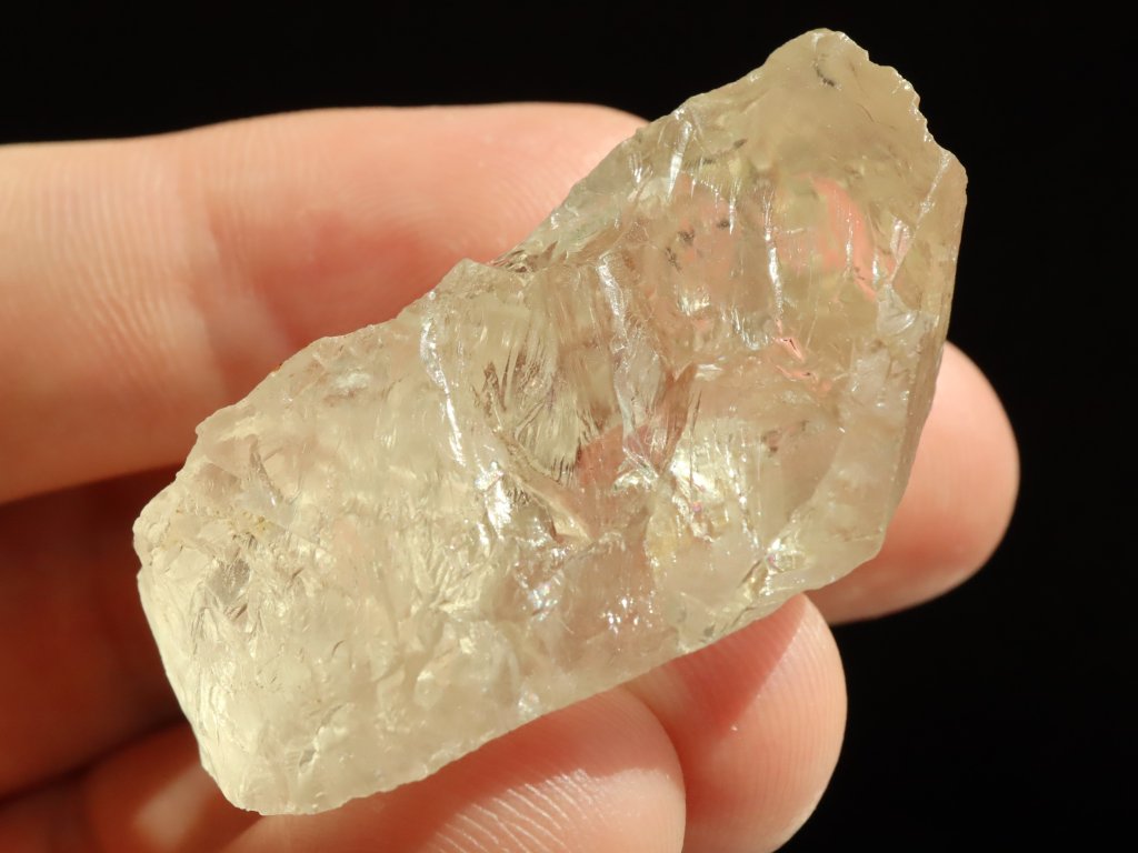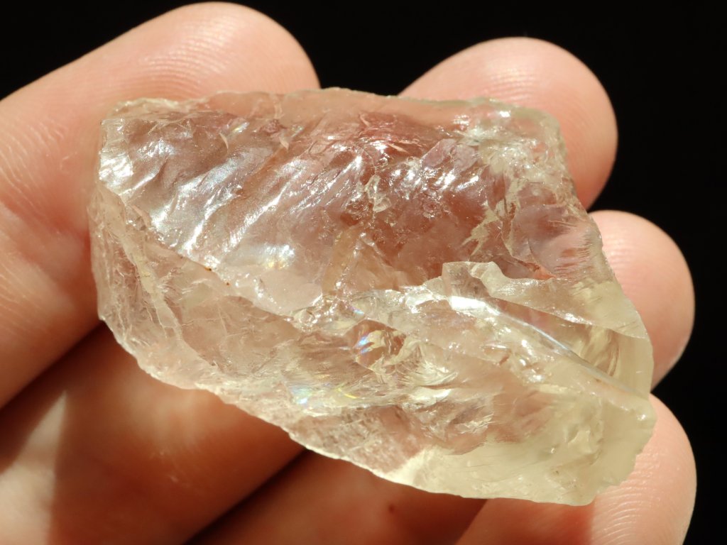 Zlomek jemně žlutého citrínu s vysokou vnitřní čistotou a barevnou duhou