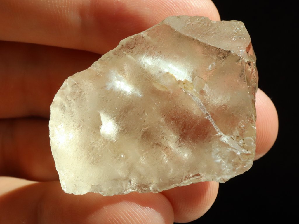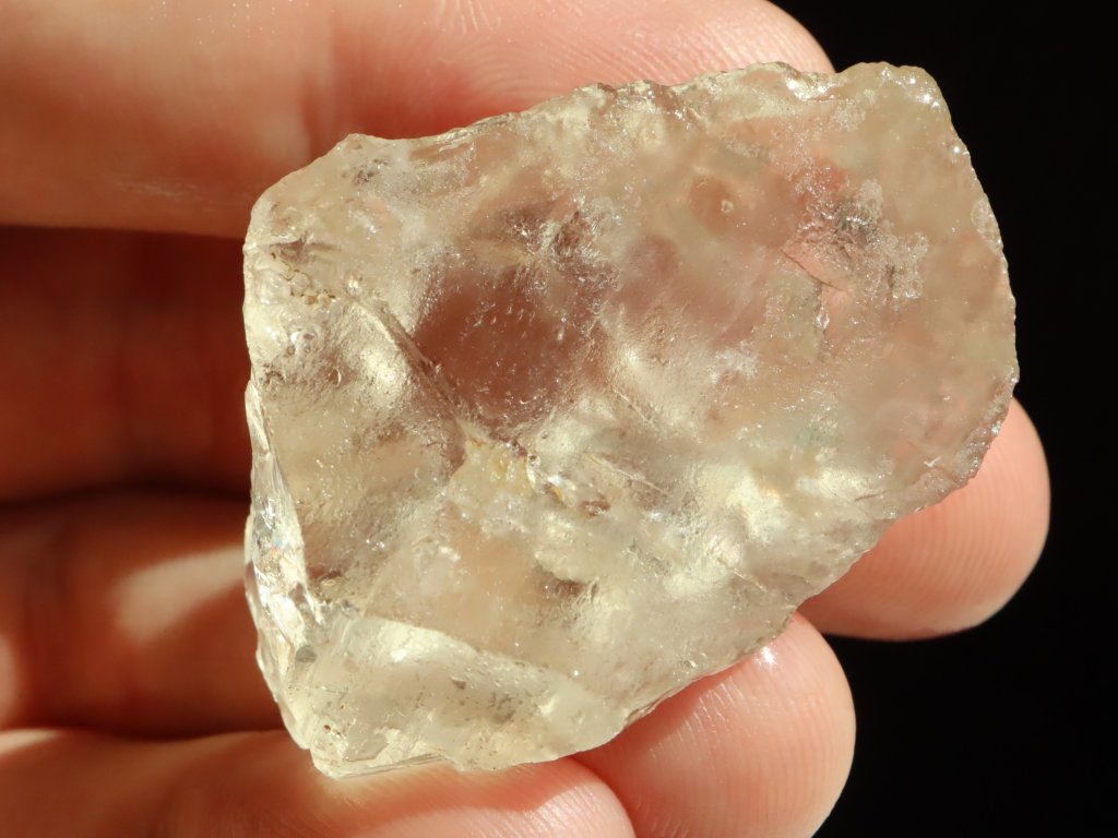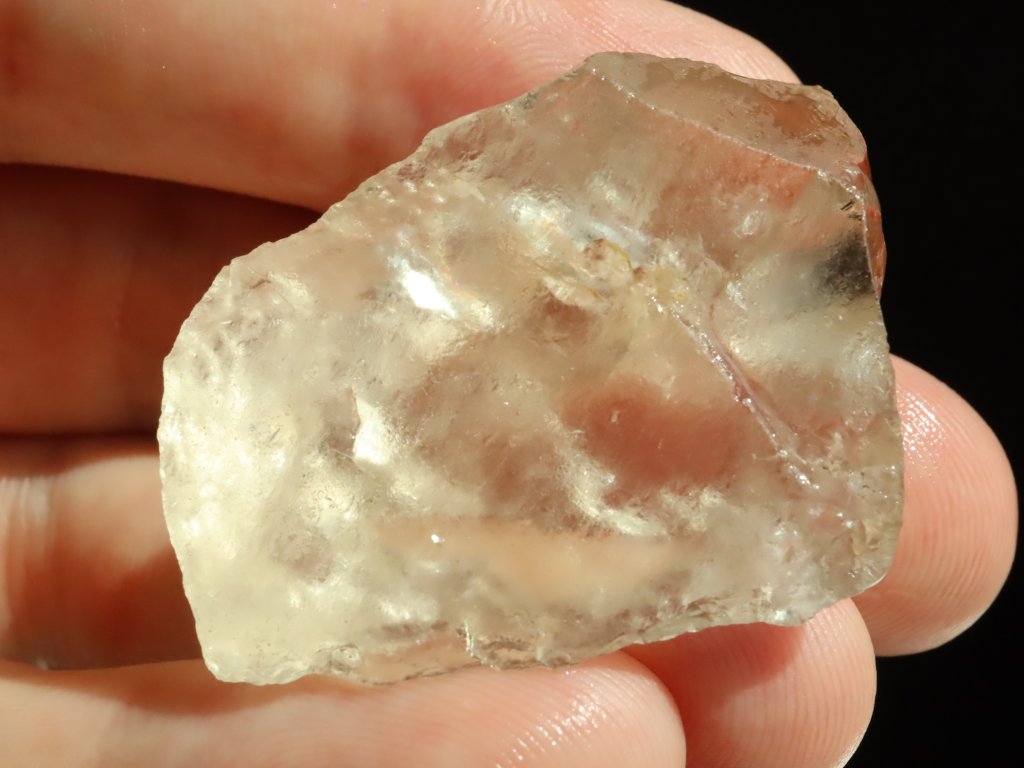 Sluníčkem či baterkou je citrín také skvěle průsvitný, uvnitř je pak patrná vysoká až drahokamová čistota s pouze menším množstvím mlhovinek či peříček.